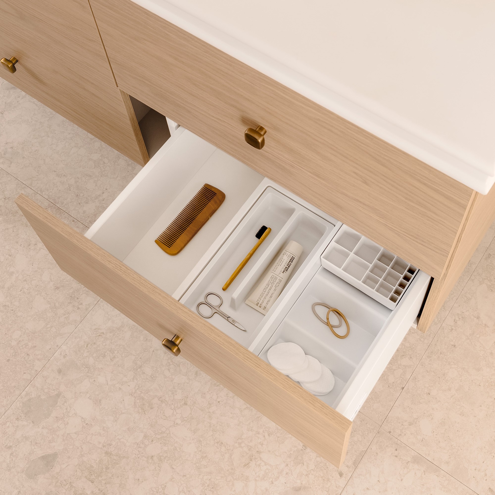 Como Drawer Organisers come standard in a select range of vanities and suit ADP Deluxe drawers only.