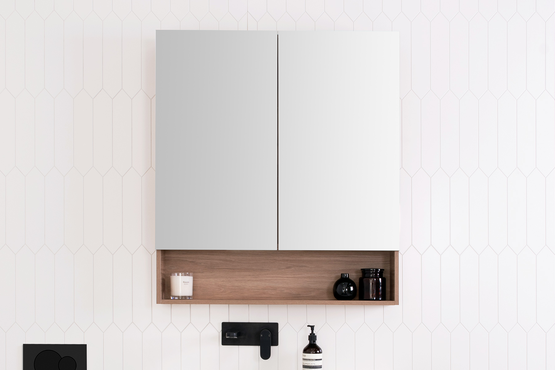 Eli 900 Mirrored Cabinet, 2 Door, Prime Oak Woodmatt textured cabinet finish