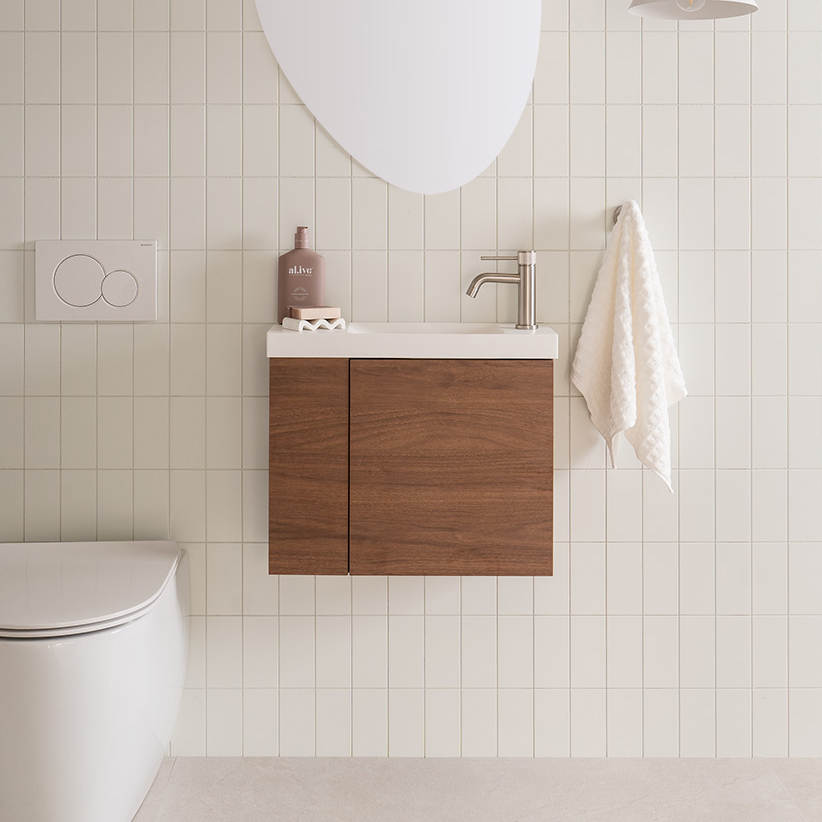 Matte White Solid Surface top. 550mm width with 220mm projection. 1 tap hole only.