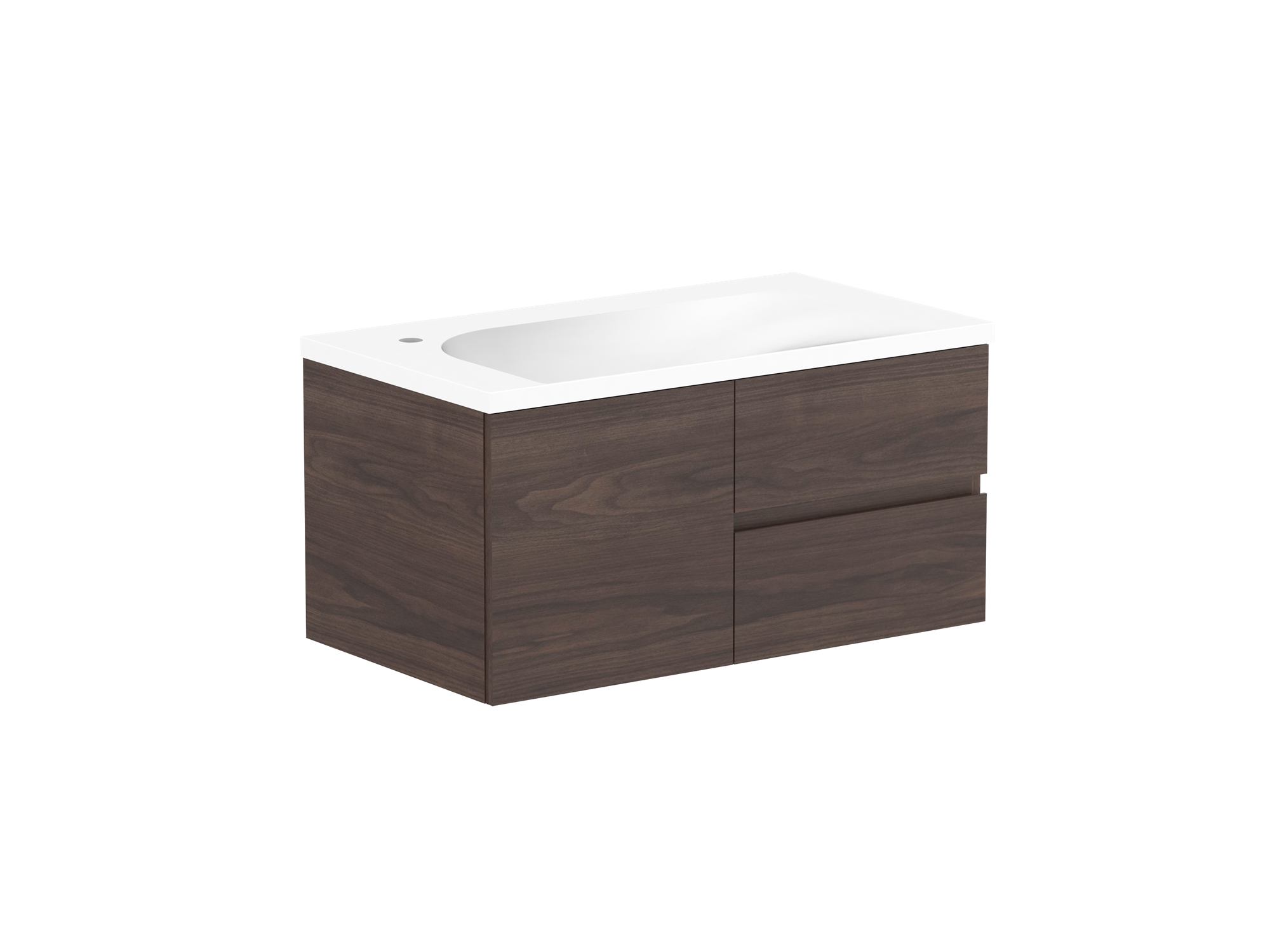 Solid surface top in matte white, with left or right hand bowl (0 or 1 tap hole).