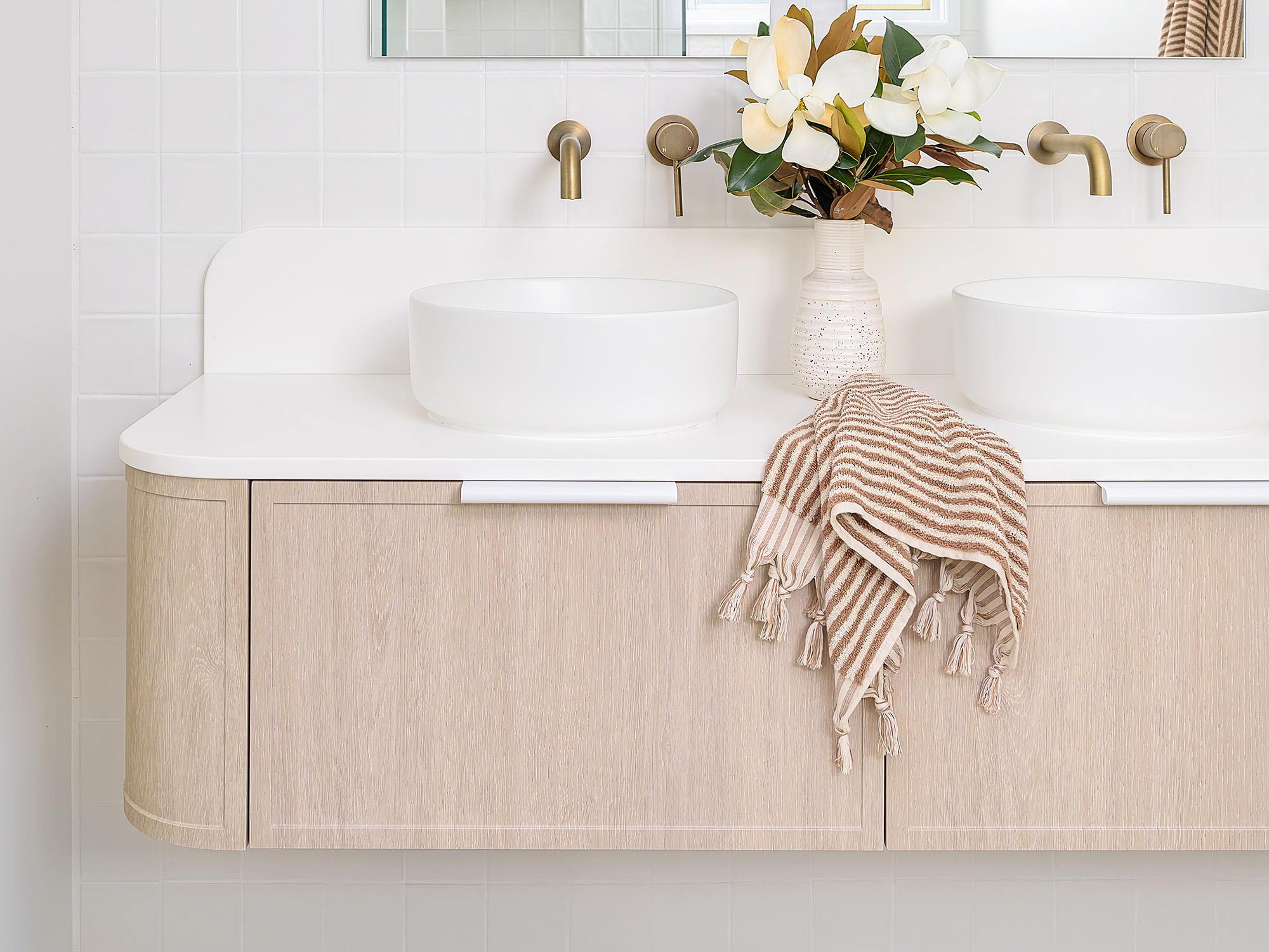 Complimentary 180mm splashback with 80mm radius, in matching benchtop colour.