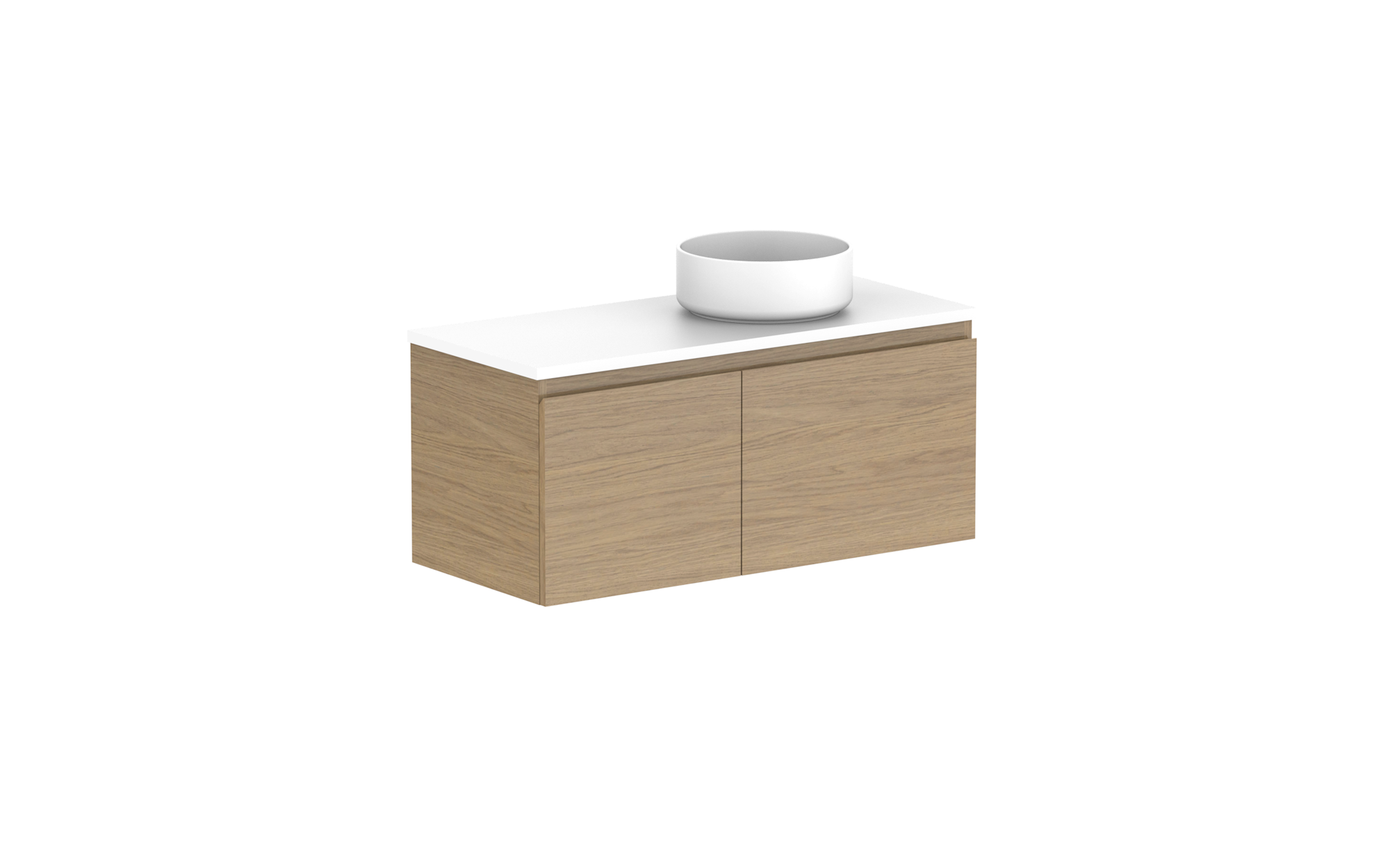 Glacier Ensuite, Door & Drawer 900 Slim WH, Benchtop Offset Bowl