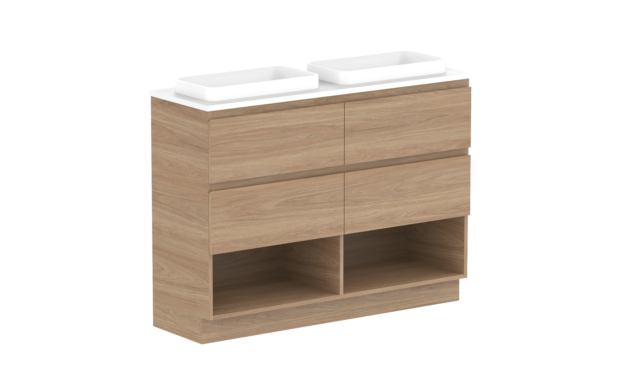 Glacier Ensuite, Shelf 1200 Trio FM, Benchtop Double Bowl