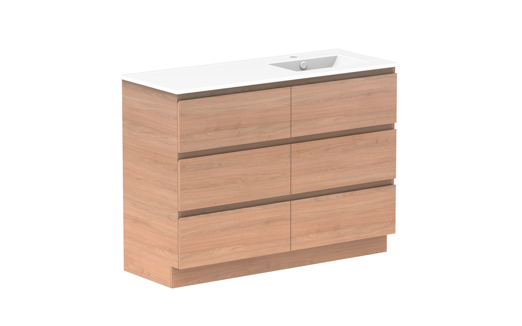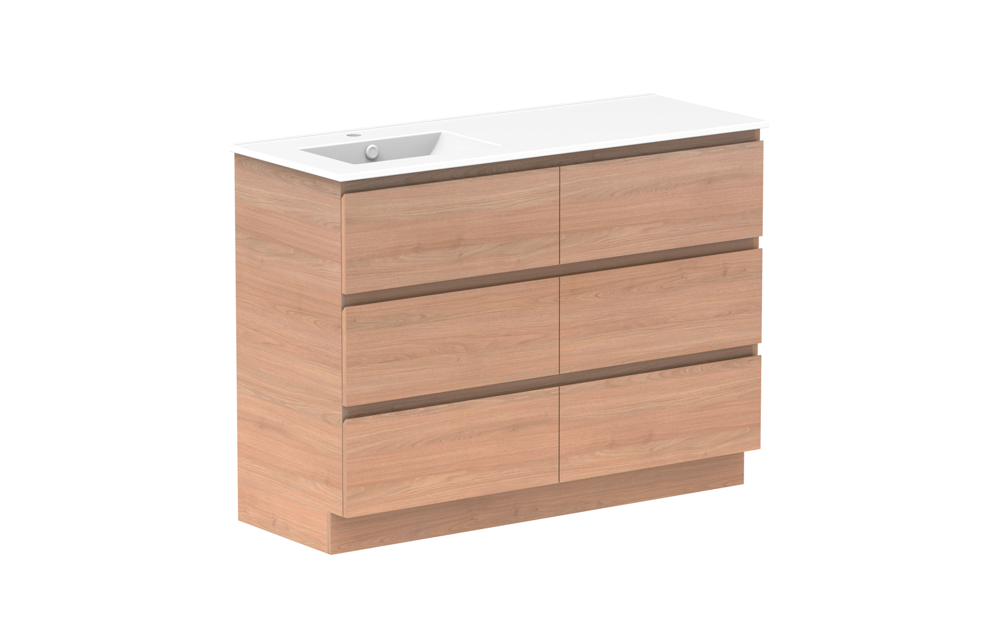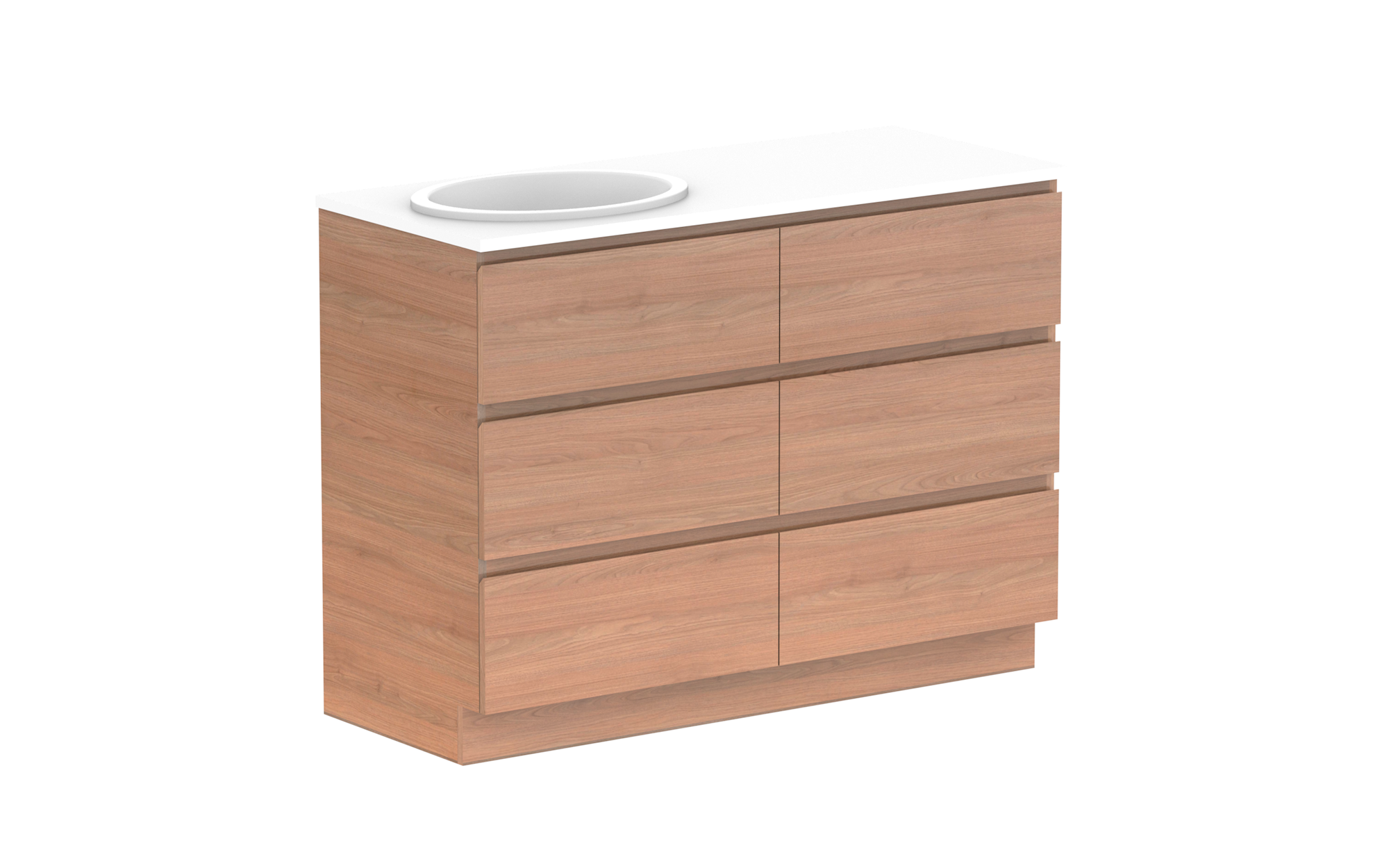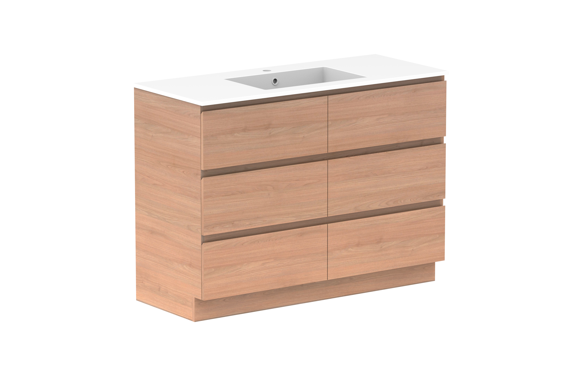 Choose from Ceramic or Cast Marble moulded tops (0, 1 or 3 tap hole available) or benchtop options (no extra charge for basin & tap hole cut-out).