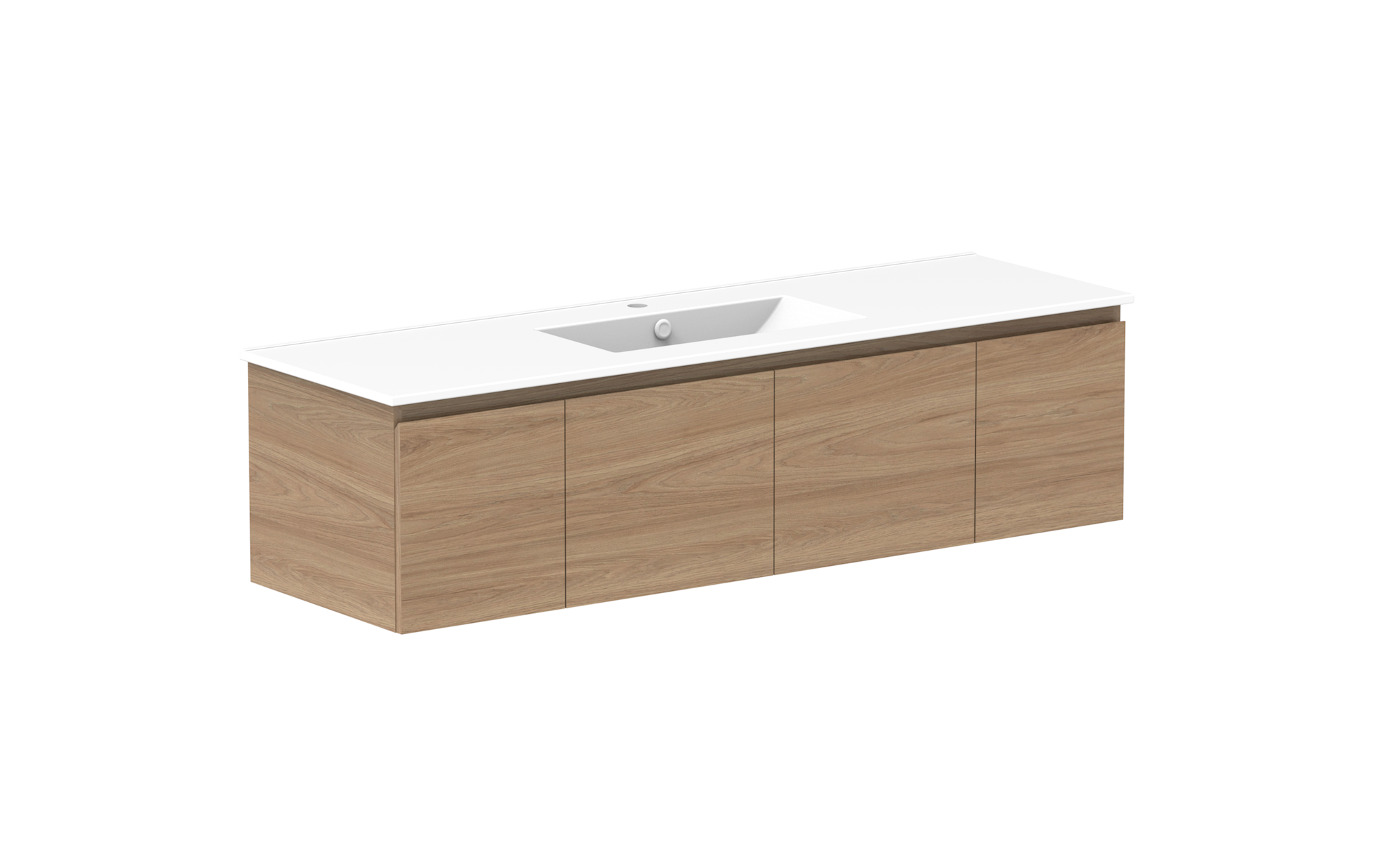 Choose from Ceramic or Cast Marble moulded tops (0, 1 or 3 tap hole available) or benchtop options (no extra charge for basin & tap hole cut-out).