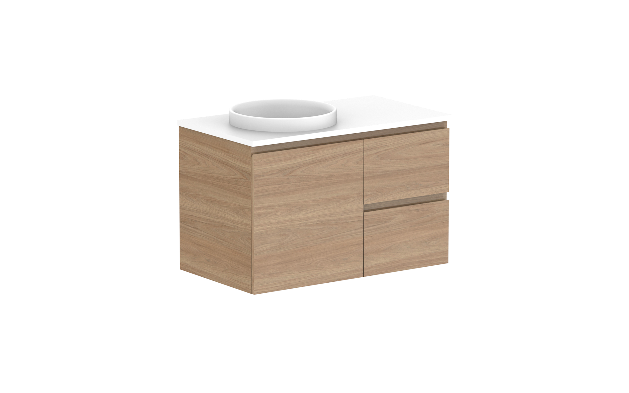Choose from Ceramic or Cast Marble moulded tops (0, 1 or 3 tap hole available) or benchtop options (no extra charge for basin & tap hole cut-out).