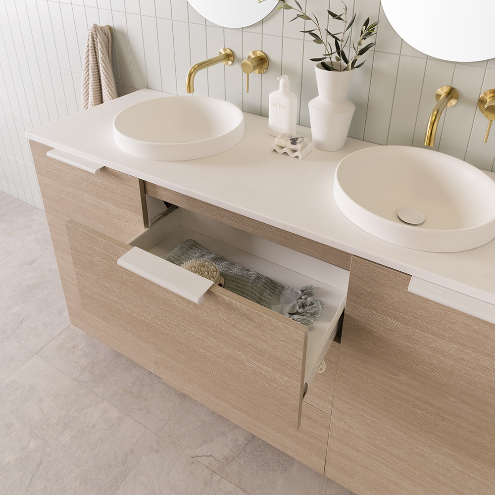 Choose from 20mm benchtop or upgrade to 40, 60 or 90mm* in all benchtop options.