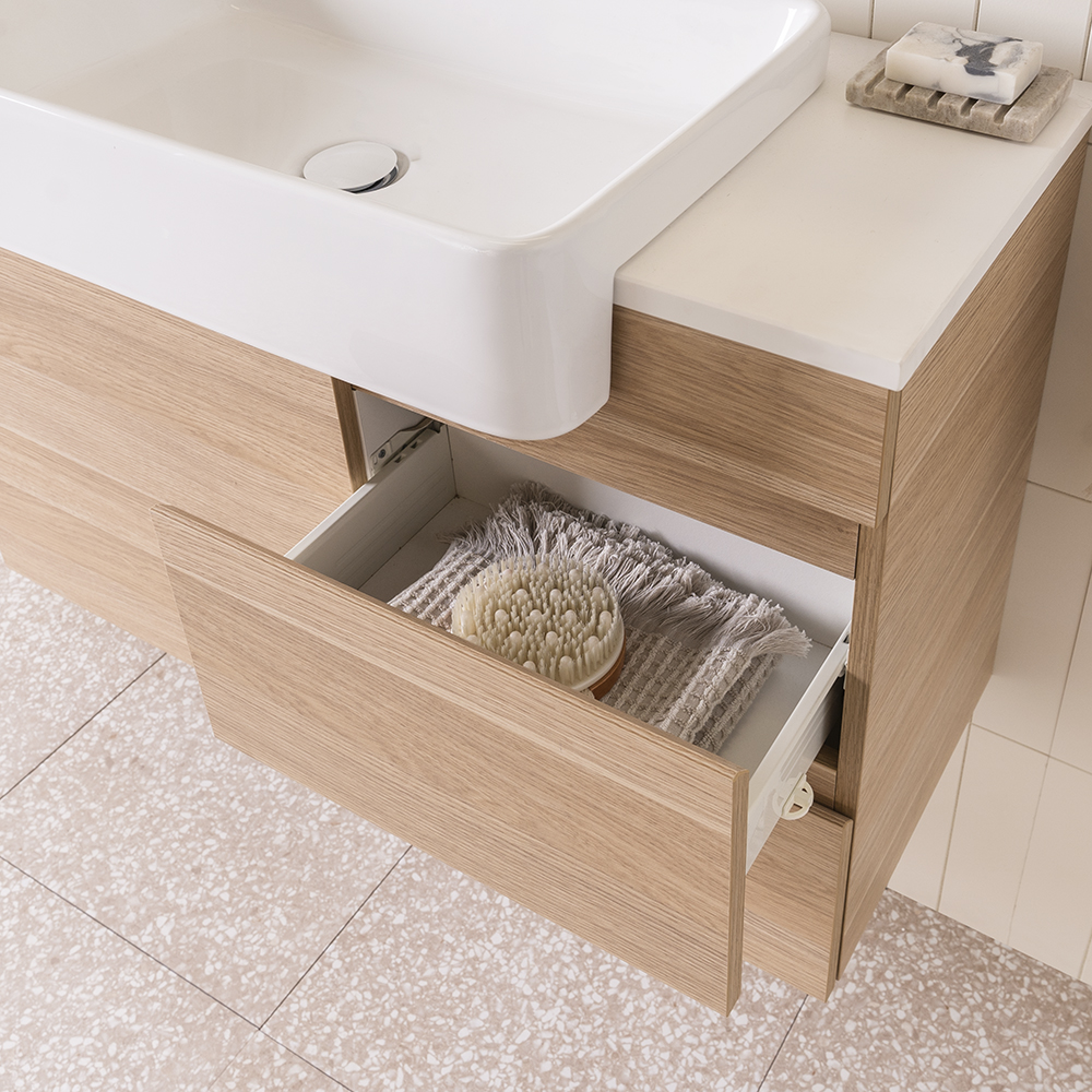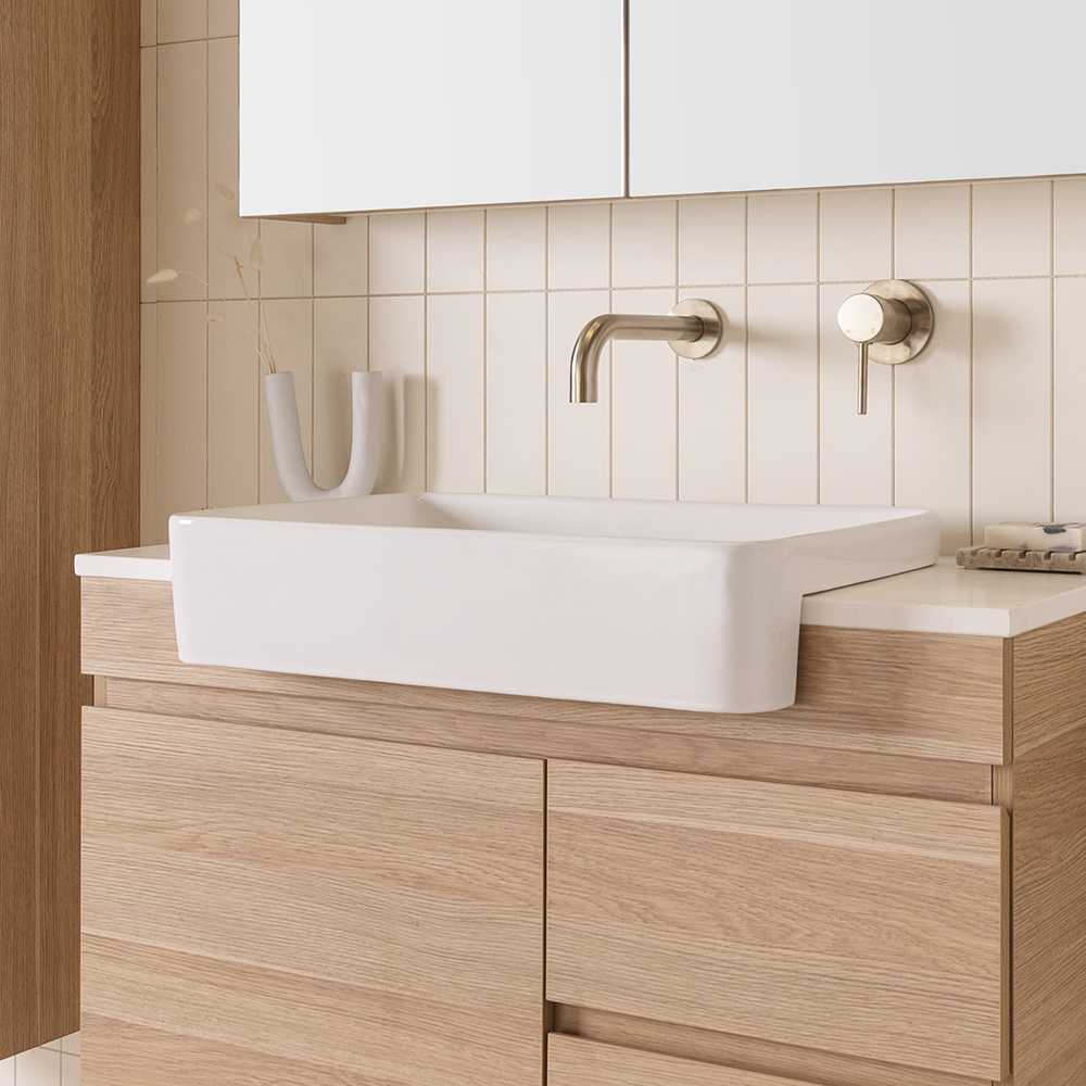 Choosing a Semi-Recessed vanity is a great option when floor space is limited but you don't want to sacrifice on basin size.