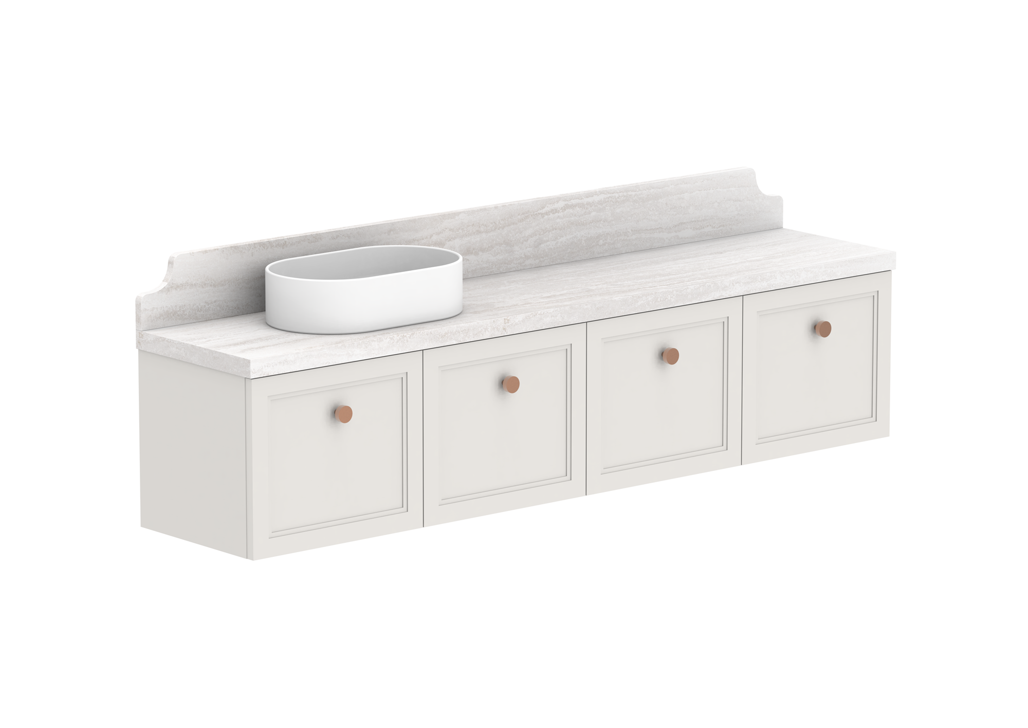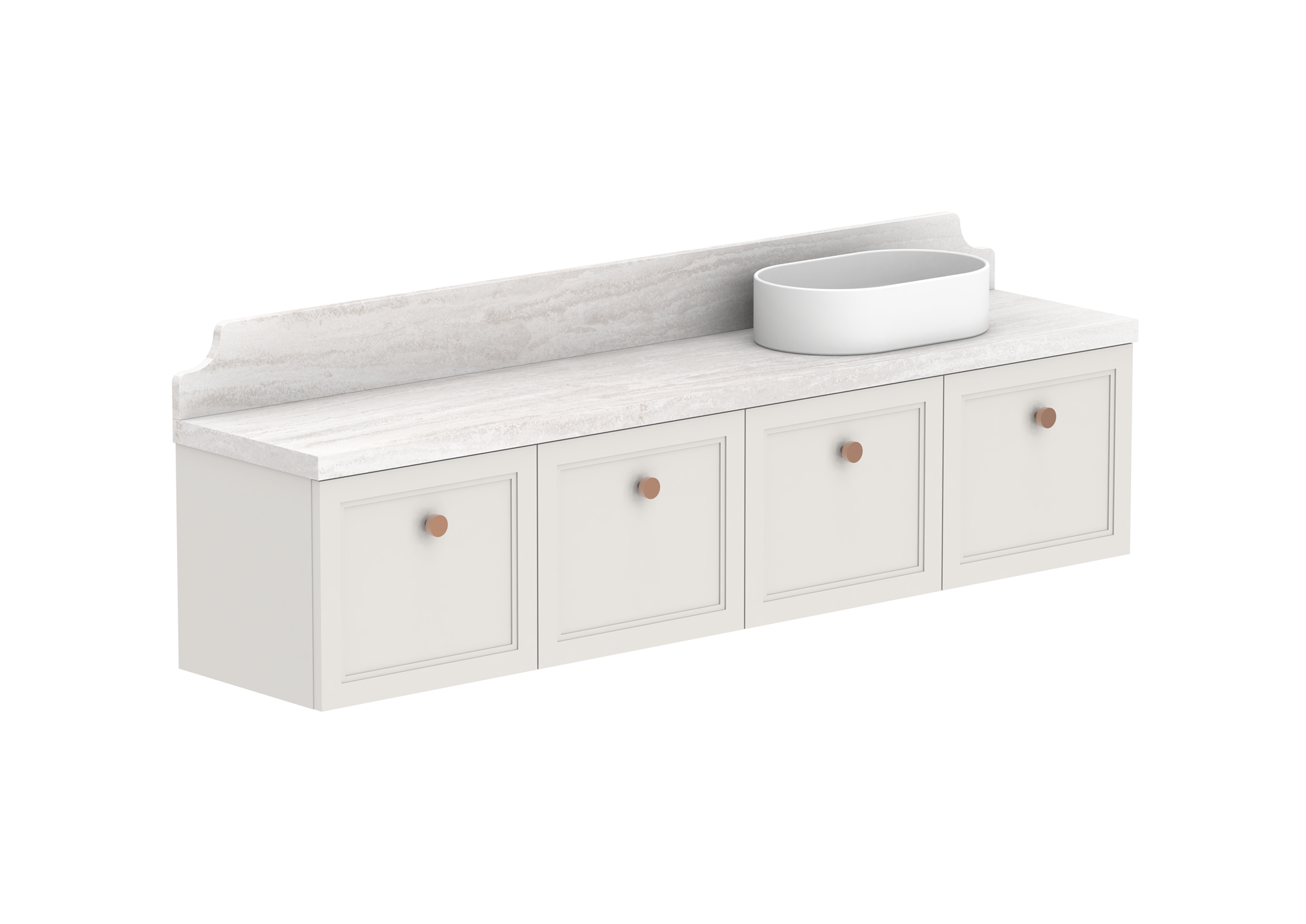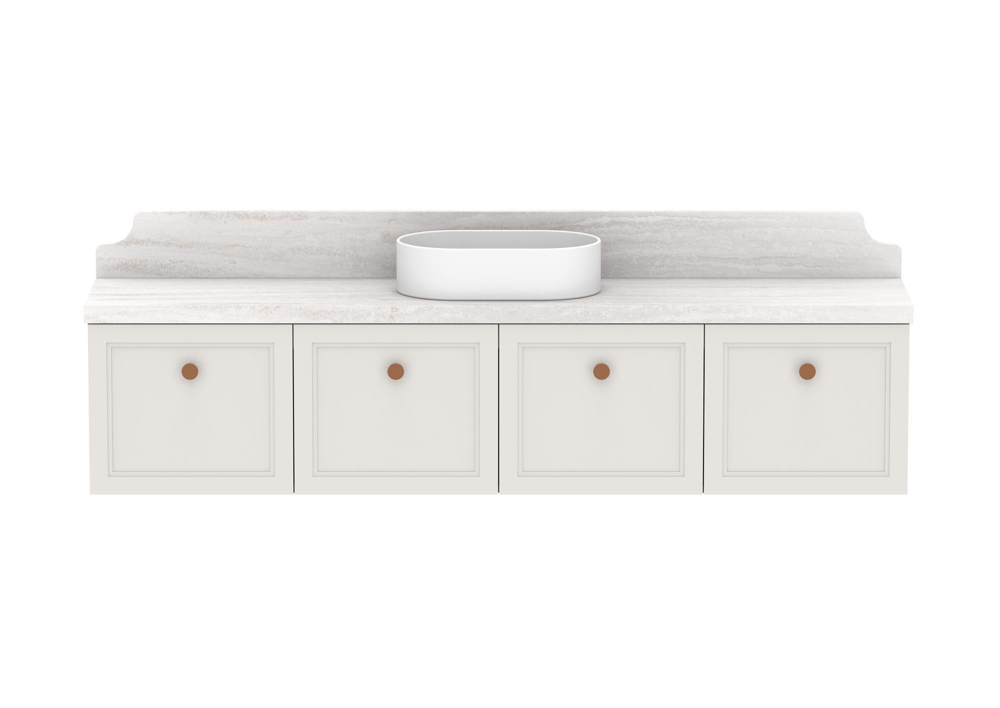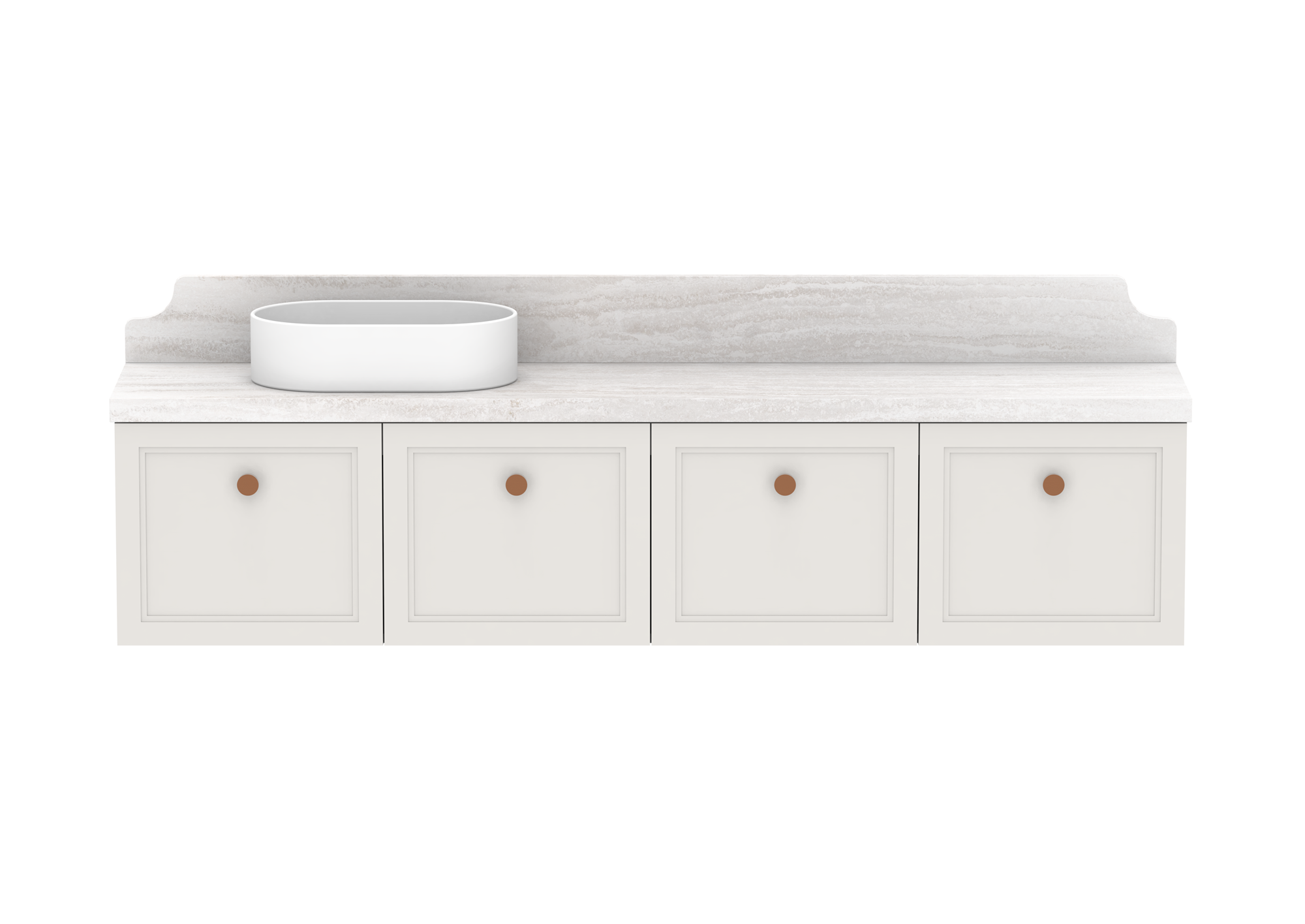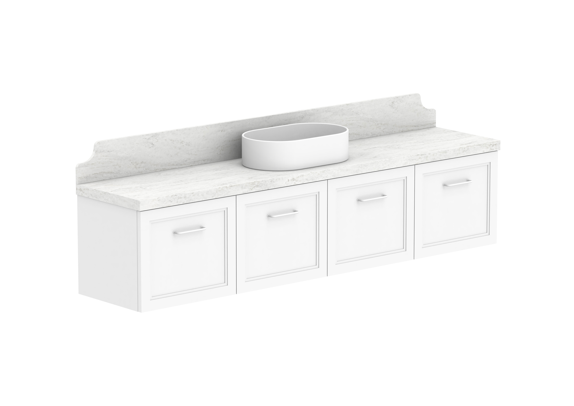Complimentary 150mm detailed splashback in matching benchtop material.