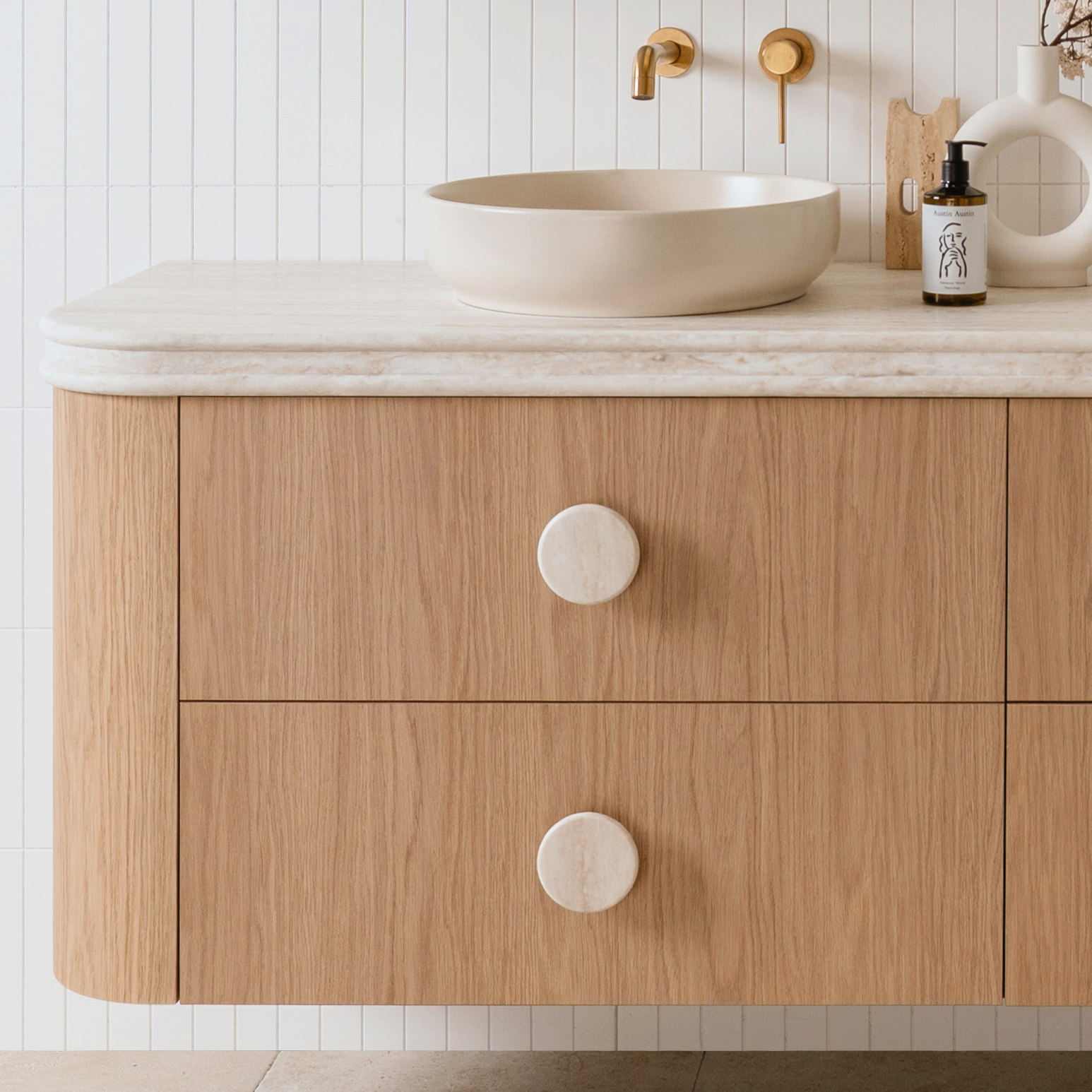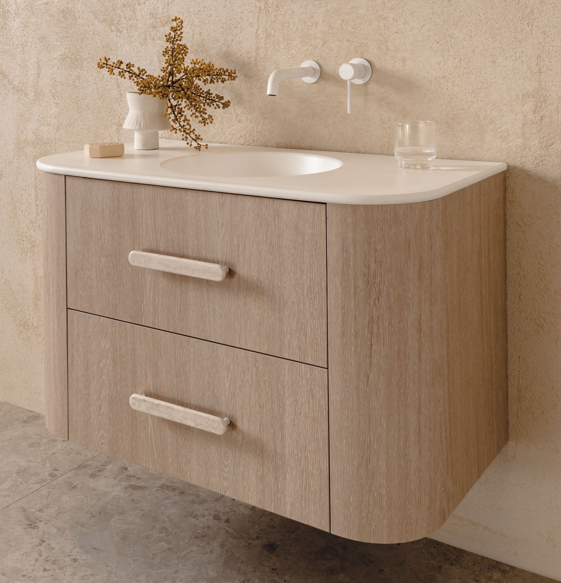 Benchtop: Choose from all benchtop options: 20mm Cherry Pie, 12mm Durasein or 20mm Caesarstone (surcharge applies). Upgrade to a Statement benchtop, 40/60/90mm (Durasein only), or a Royale benchtop, 60mm, featuring bullnose detailing (Durasein only), surcharge applies.