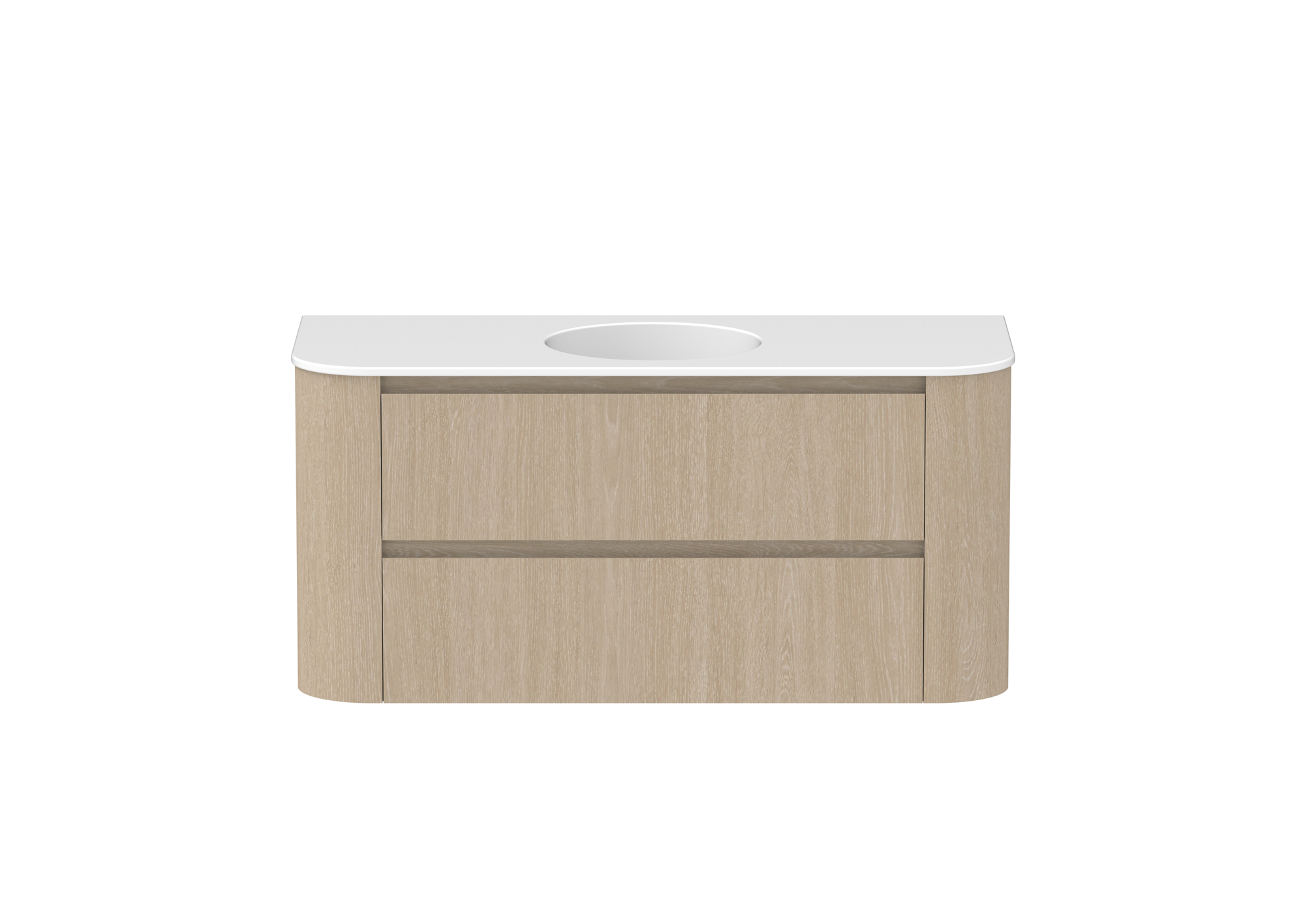 Matte Ceramic: Curved ceramic moulded top in matte finish, featuring an integrated overflow positioned in the front of the bowl. Tap hole available as 10 or 2 o’clock position or 0 tap hole (for wall taps).