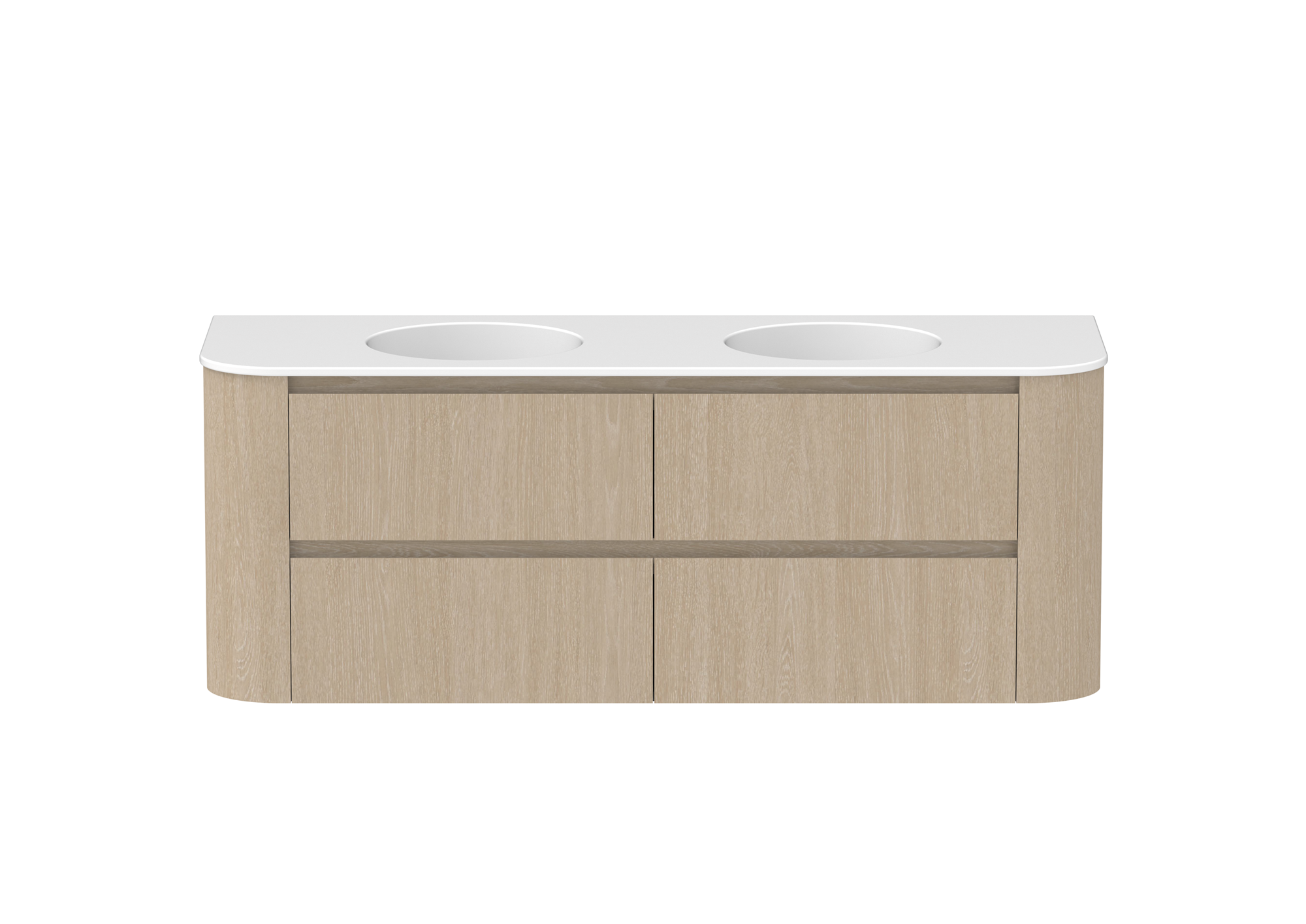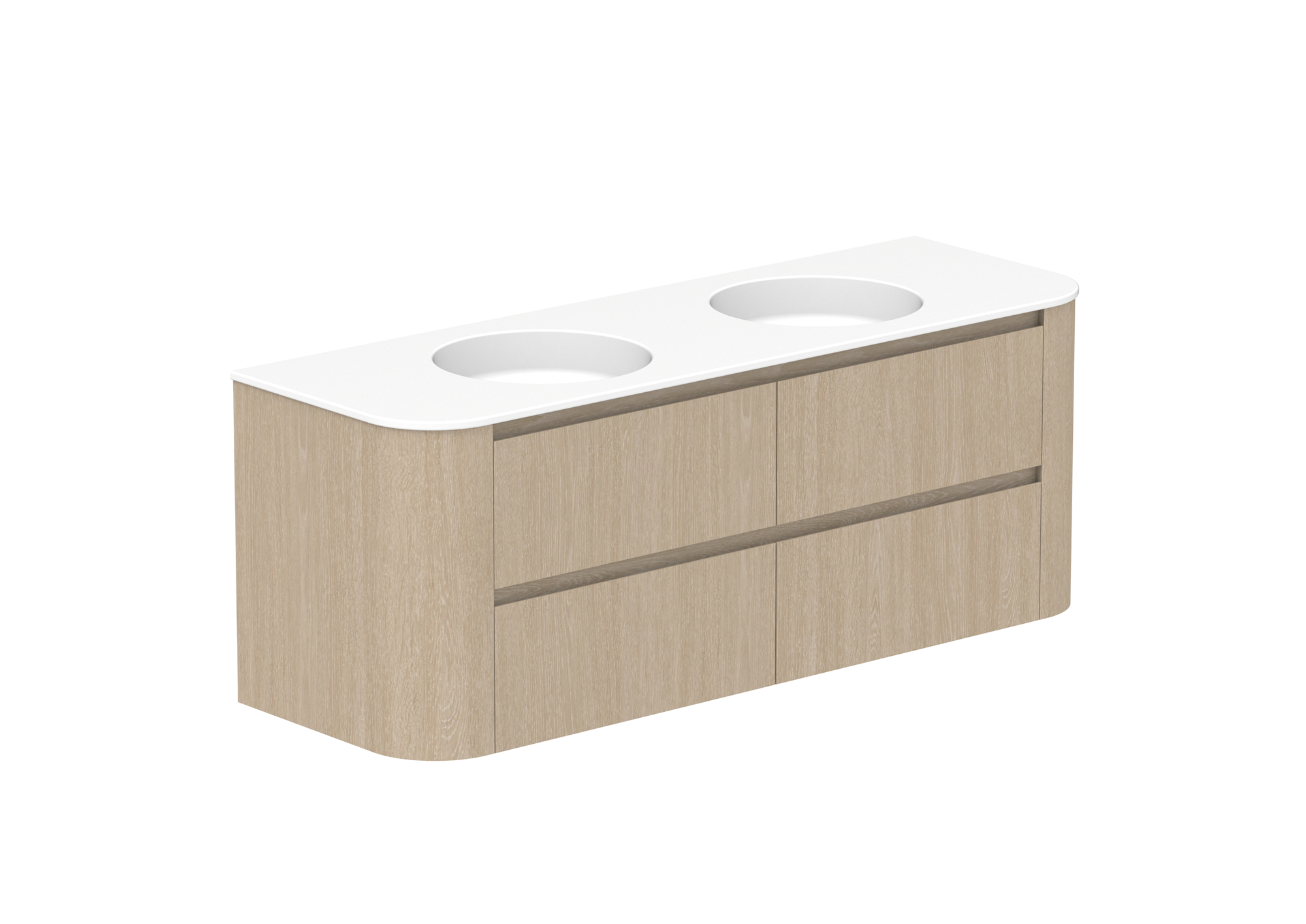Matte Ceramic: Curved ceramic moulded top in matte finish, featuring an integrated overflow positioned in the front of the bowl. Tap hole available as 10 or 2 o’clock position or 0 tap hole (for wall taps).