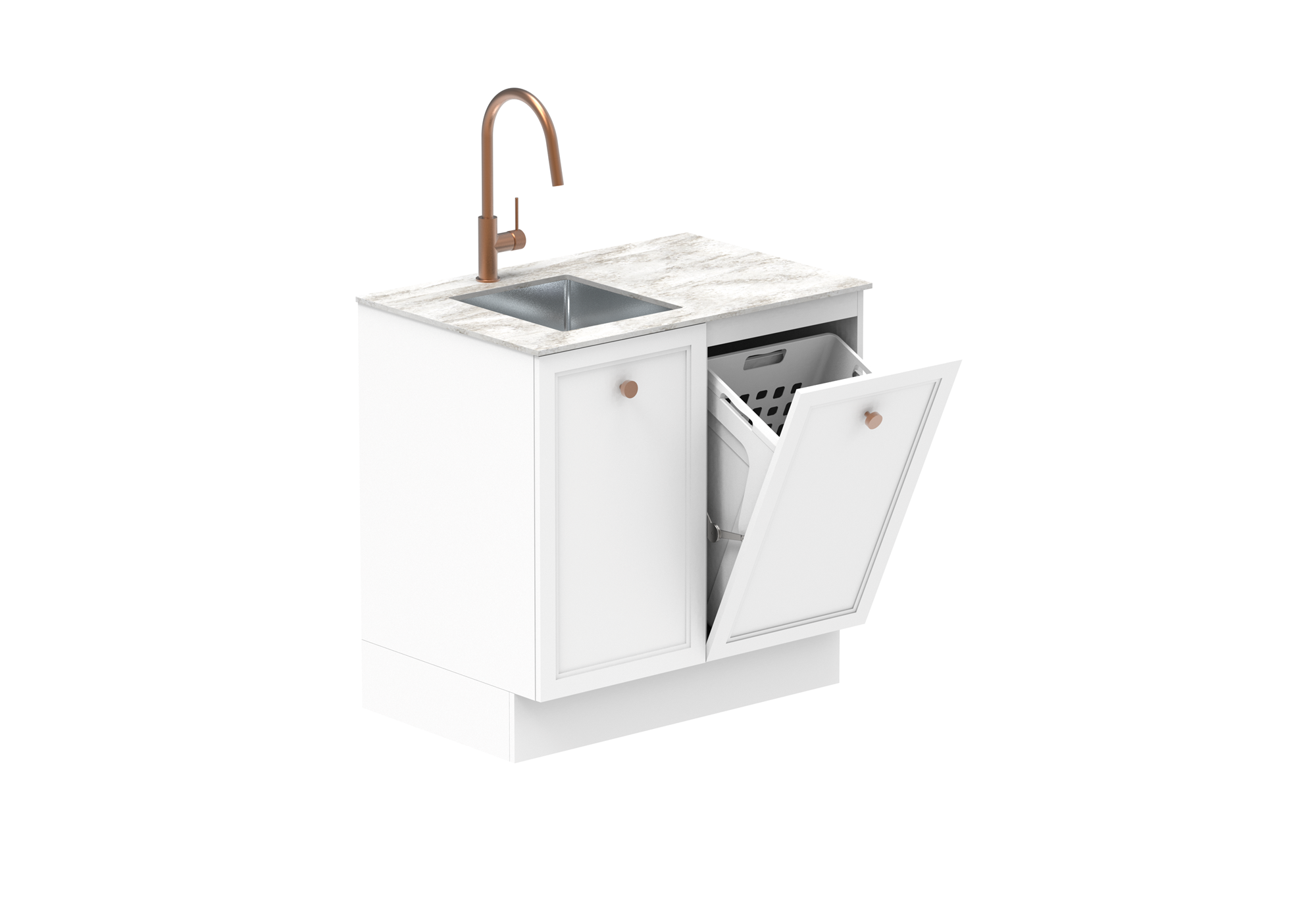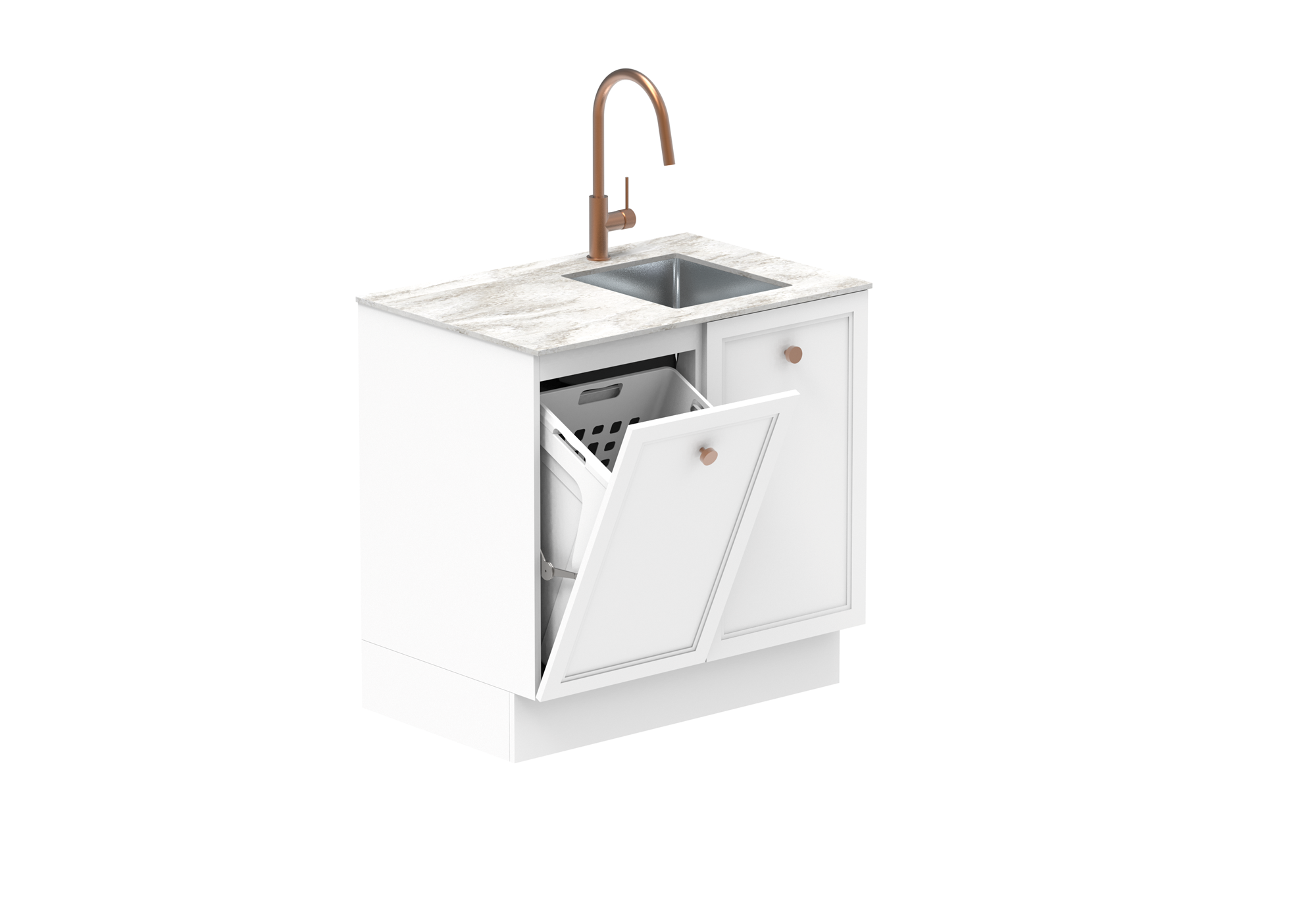 Hamper models come with 48L pull out hamper in white