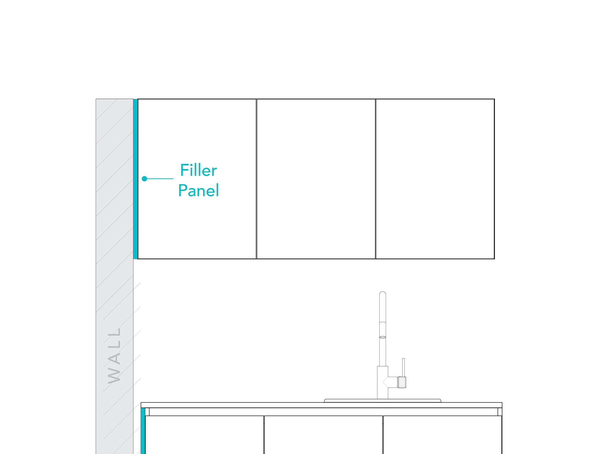 Note that fillers are supplied at 16mm thickness and no alterations will be made to cabinet.