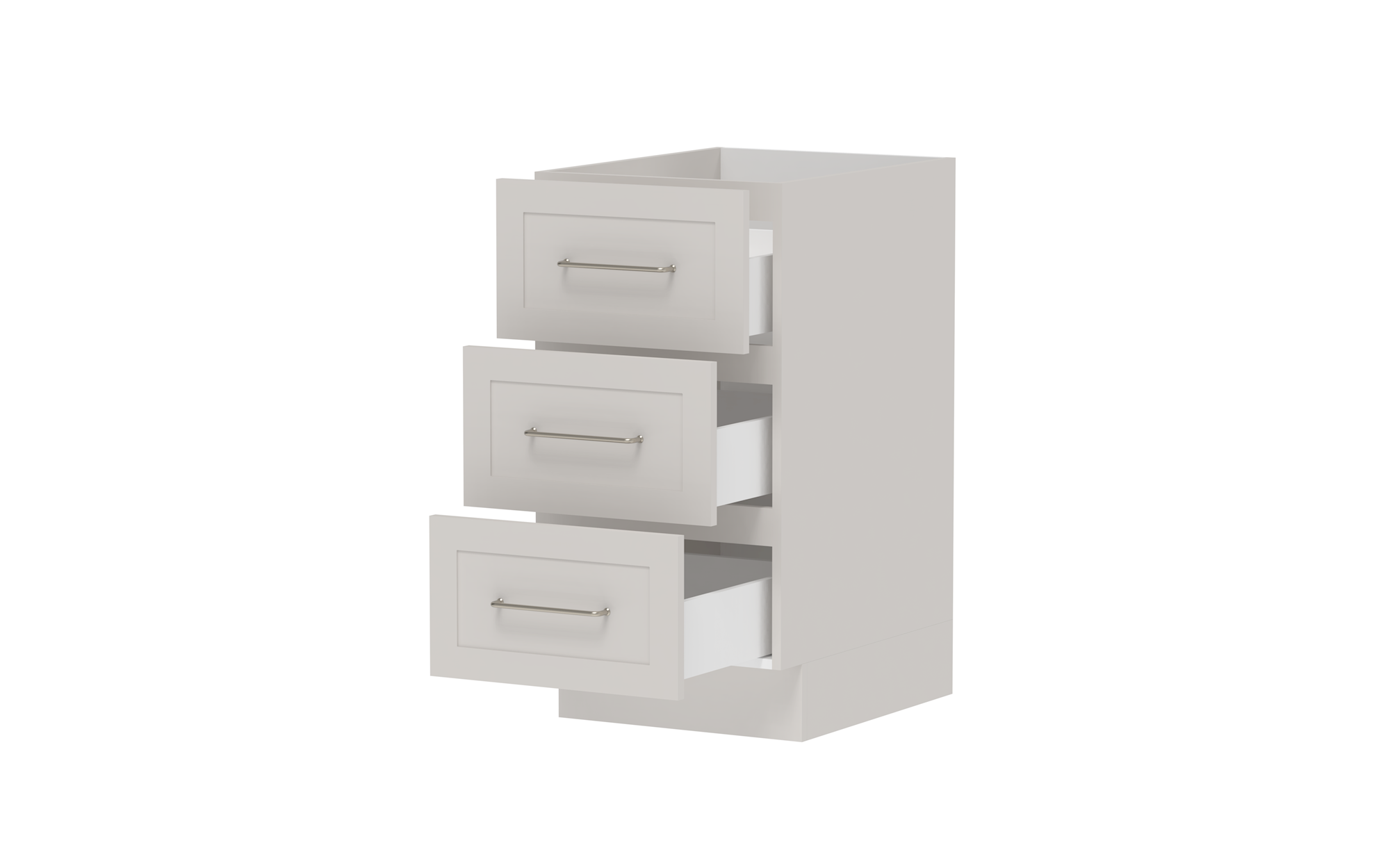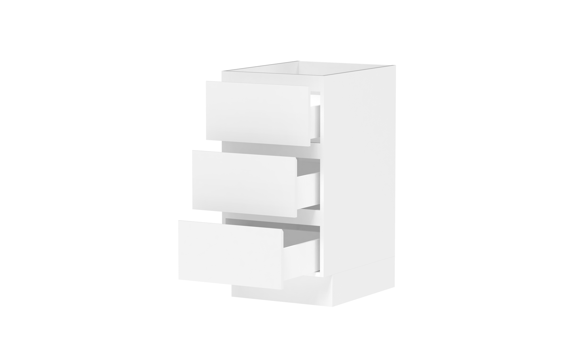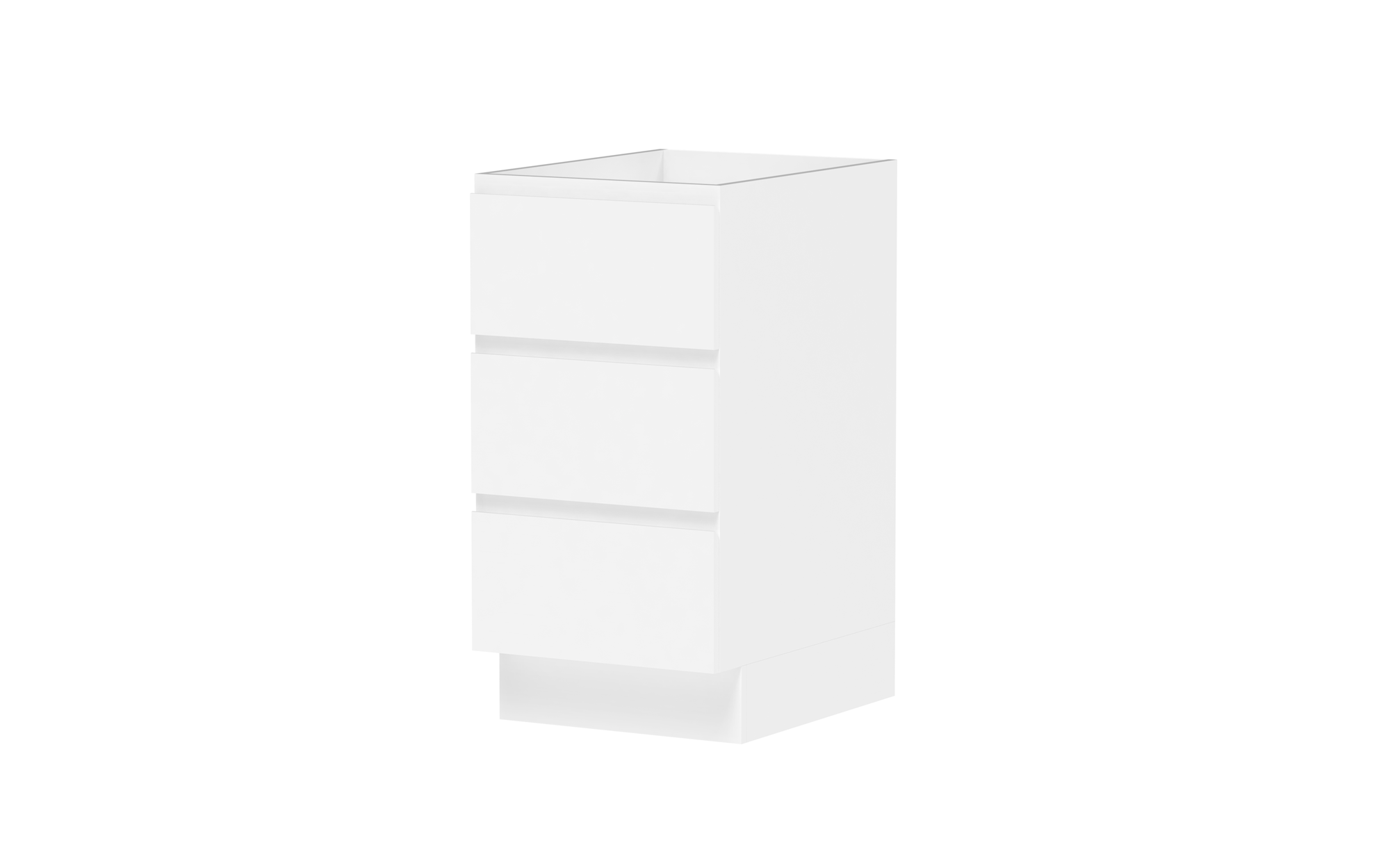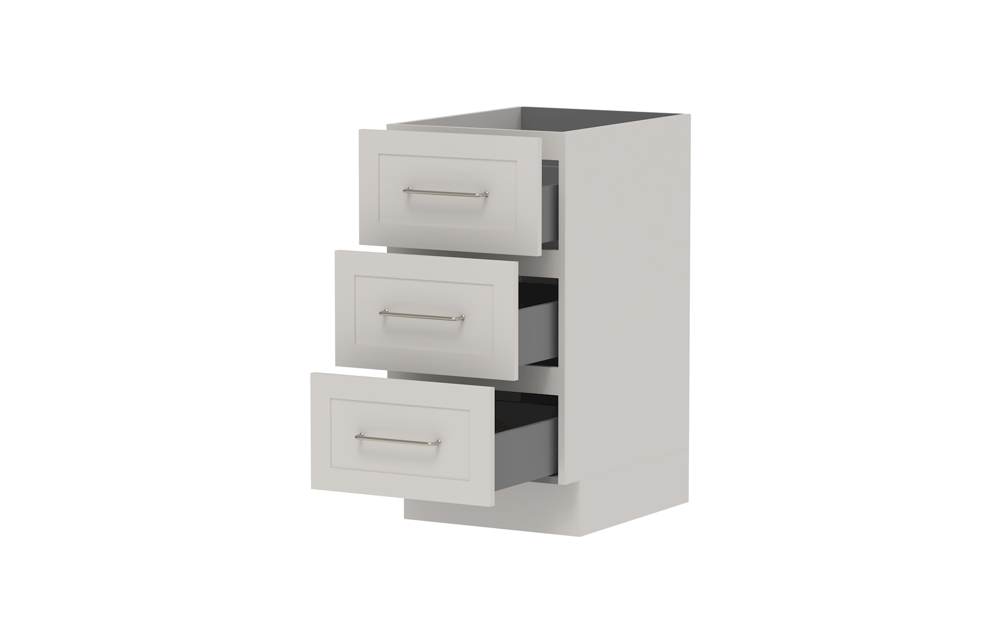 Drawer Cabinets - Pure Silk cabinets come with ADP pressed metal soft-close drawers in white. Decor and Classic cabinets come with ADP Deluxe soft-close drawers with solid sides in graphite..