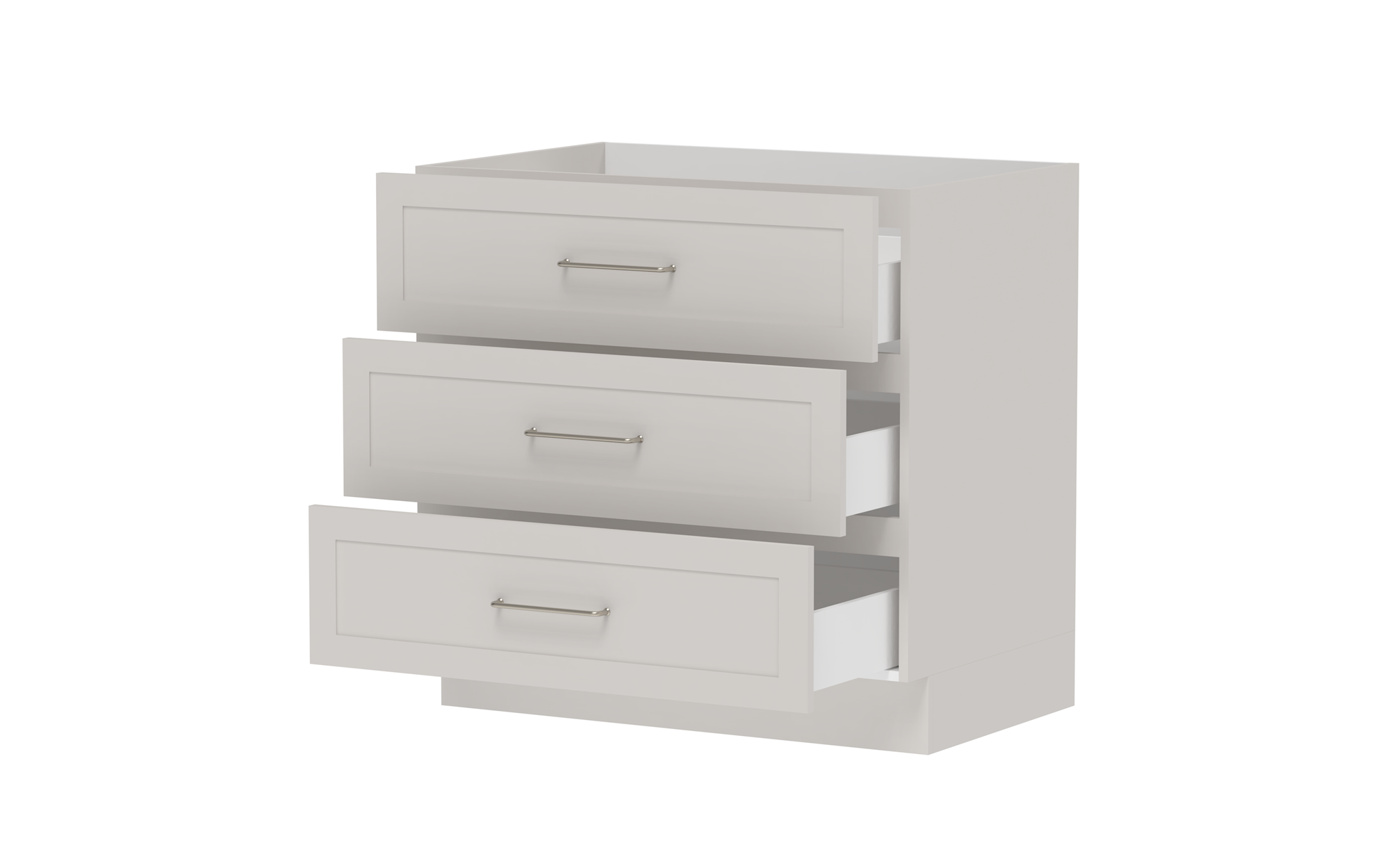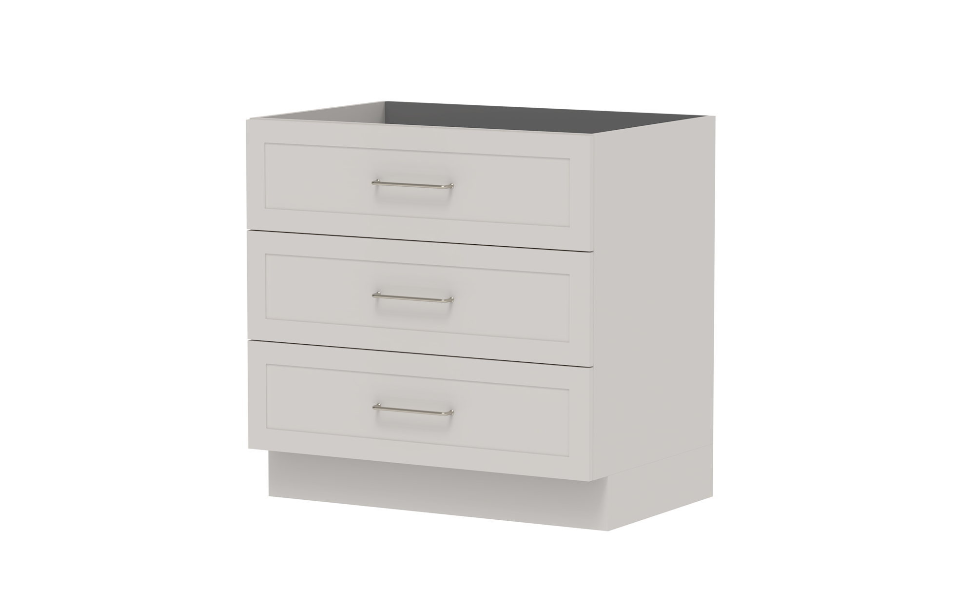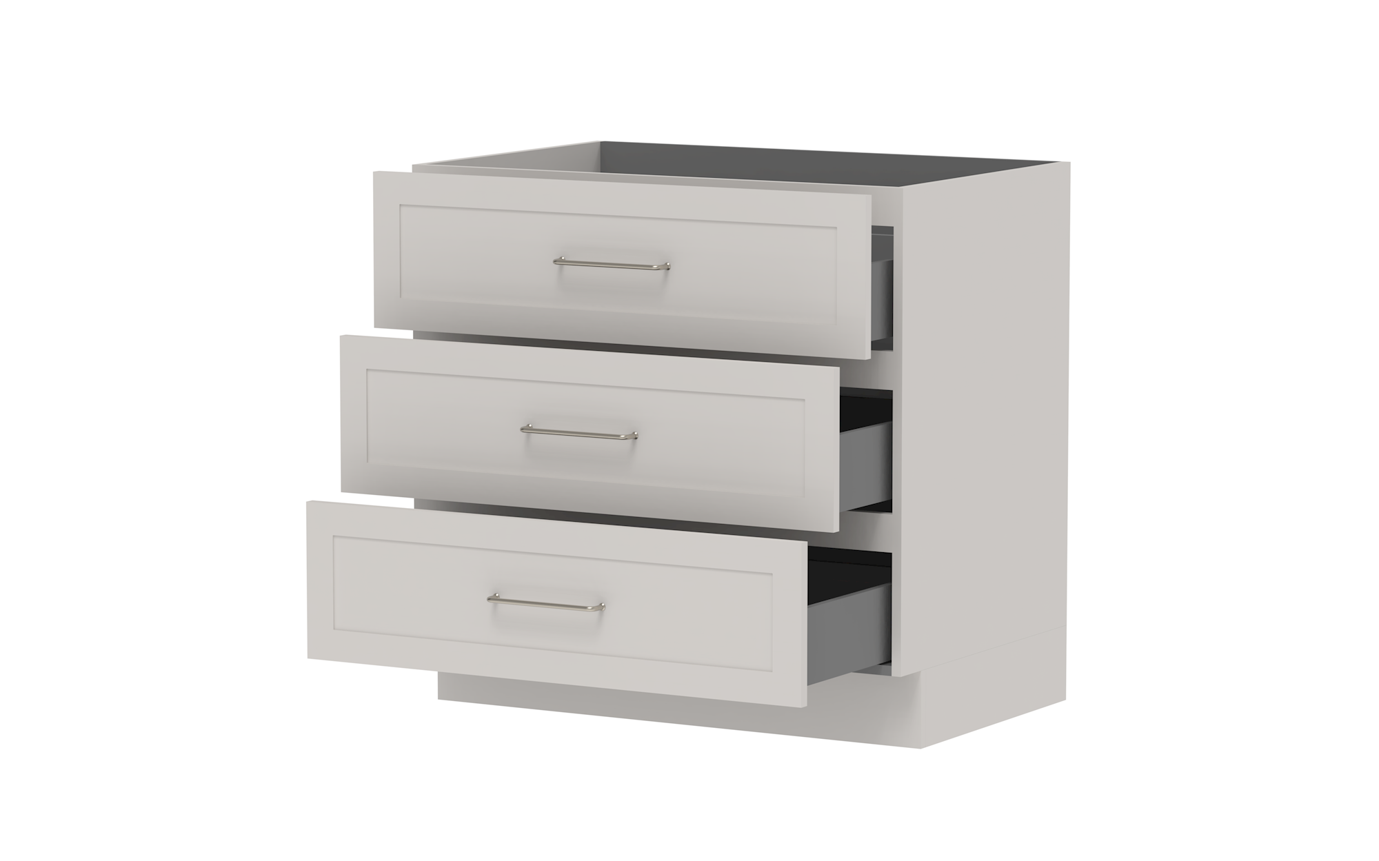 Drawer Cabinets - Pure Silk cabinets come with ADP pressed metal soft-close drawers in white. Decor and Classic cabinets come with ADP Deluxe soft-close drawers with solid sides in graphite..