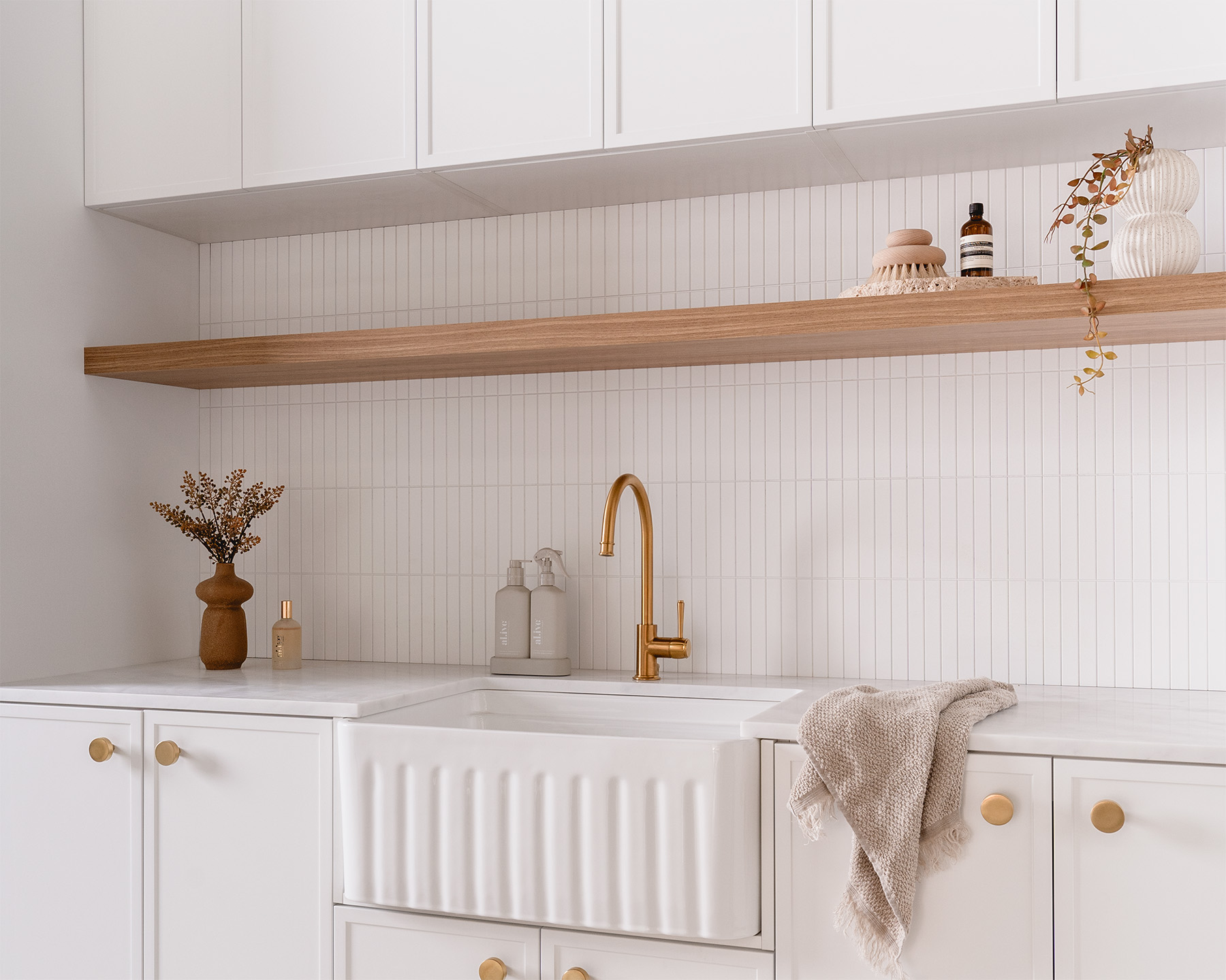 Ceramic Butlers Sink 600 & Eternal Sink Mixer in Brushed Brass.
