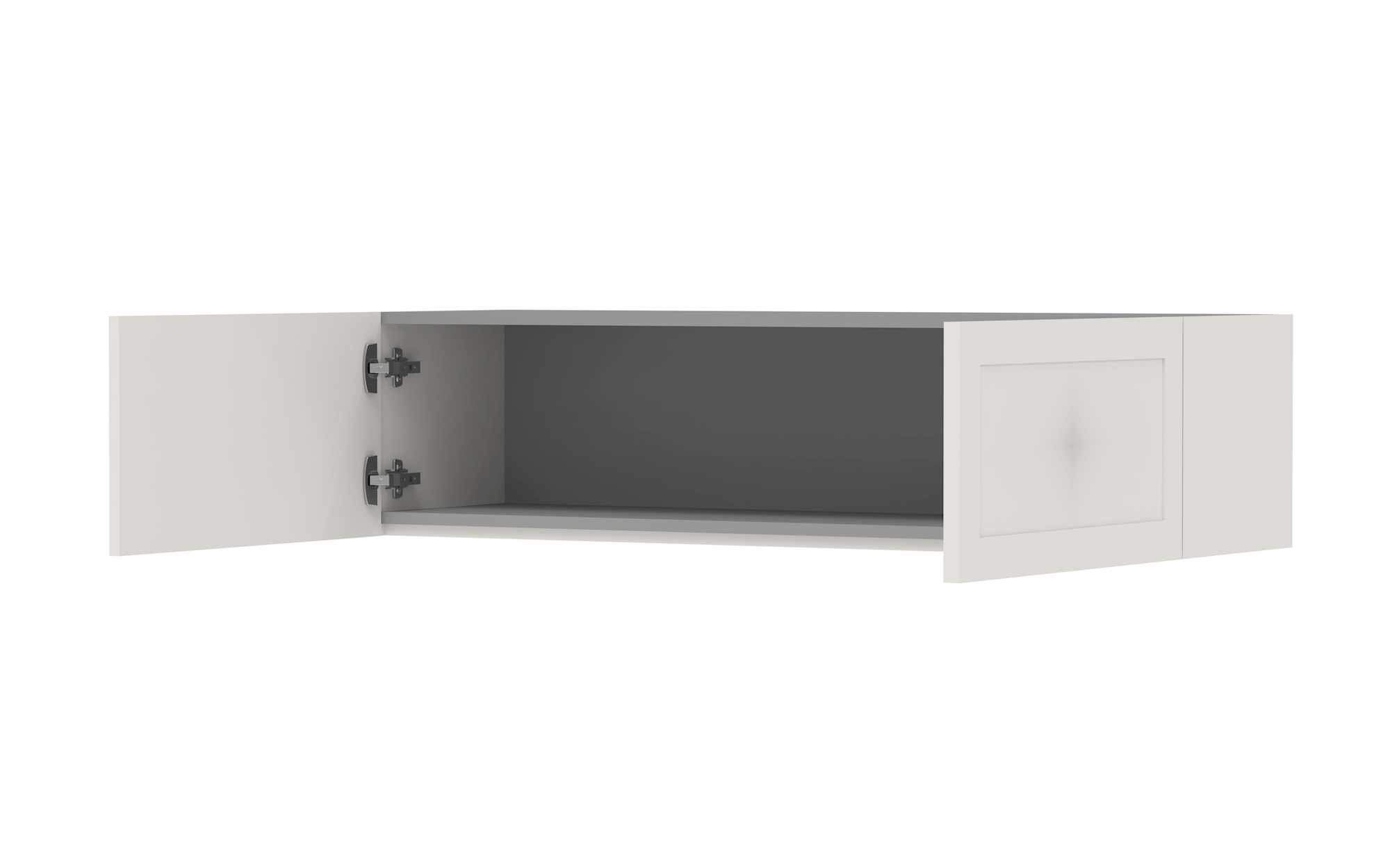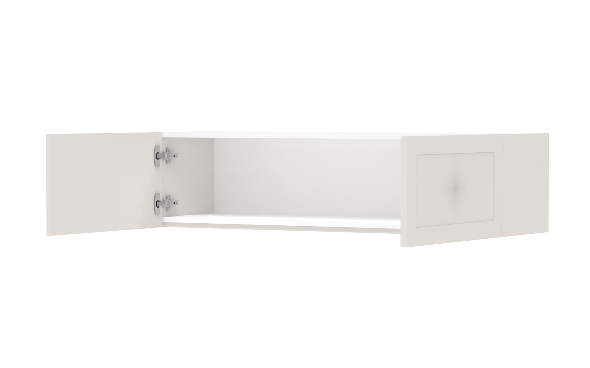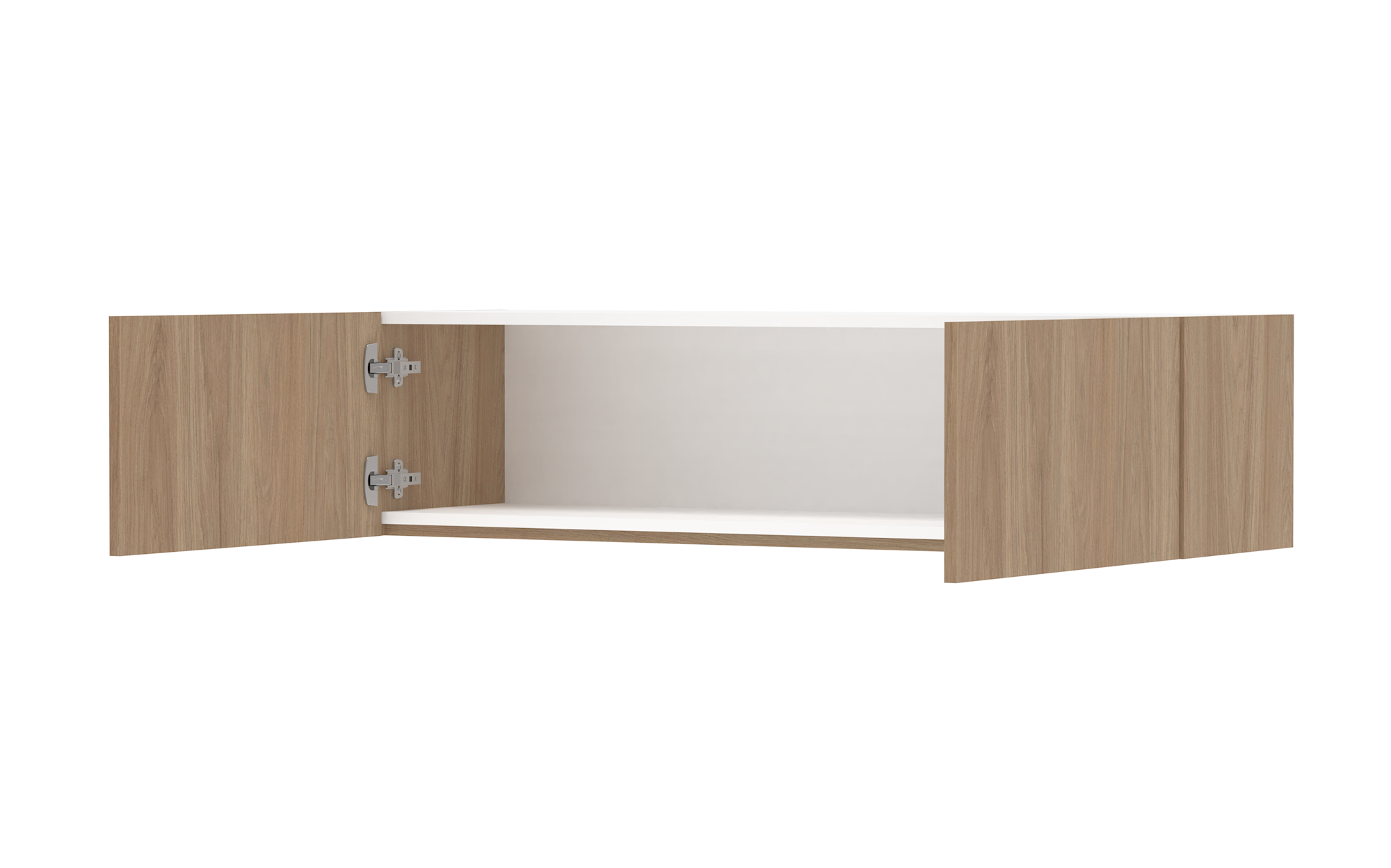 Please note: If open shelf is placed below a wall cabinet, wall cabinet above will be push-to-open (not finger pull).