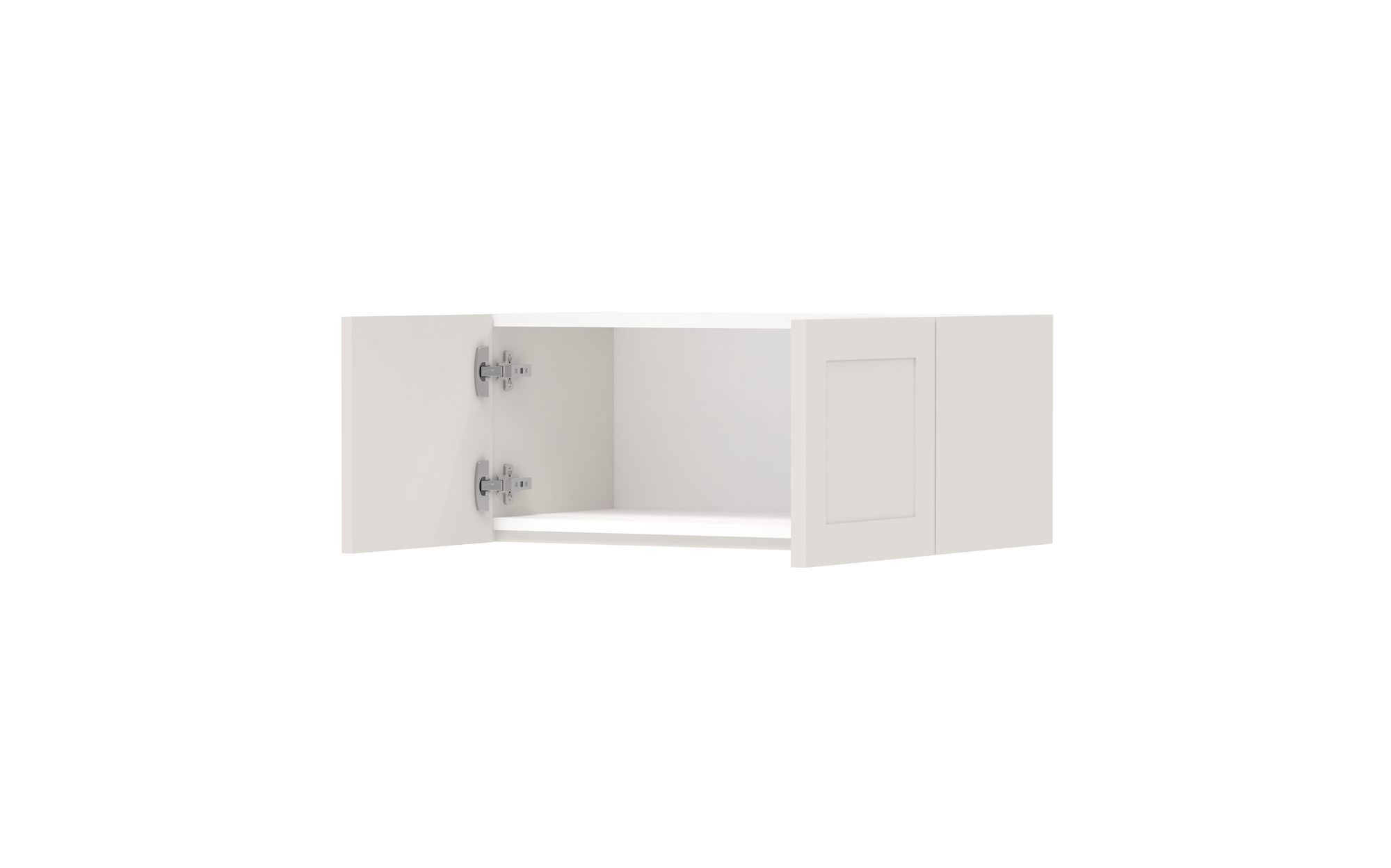 Please note: If open shelf is placed below a wall cabinet, wall cabinet above will be push-to-open (not finger pull).