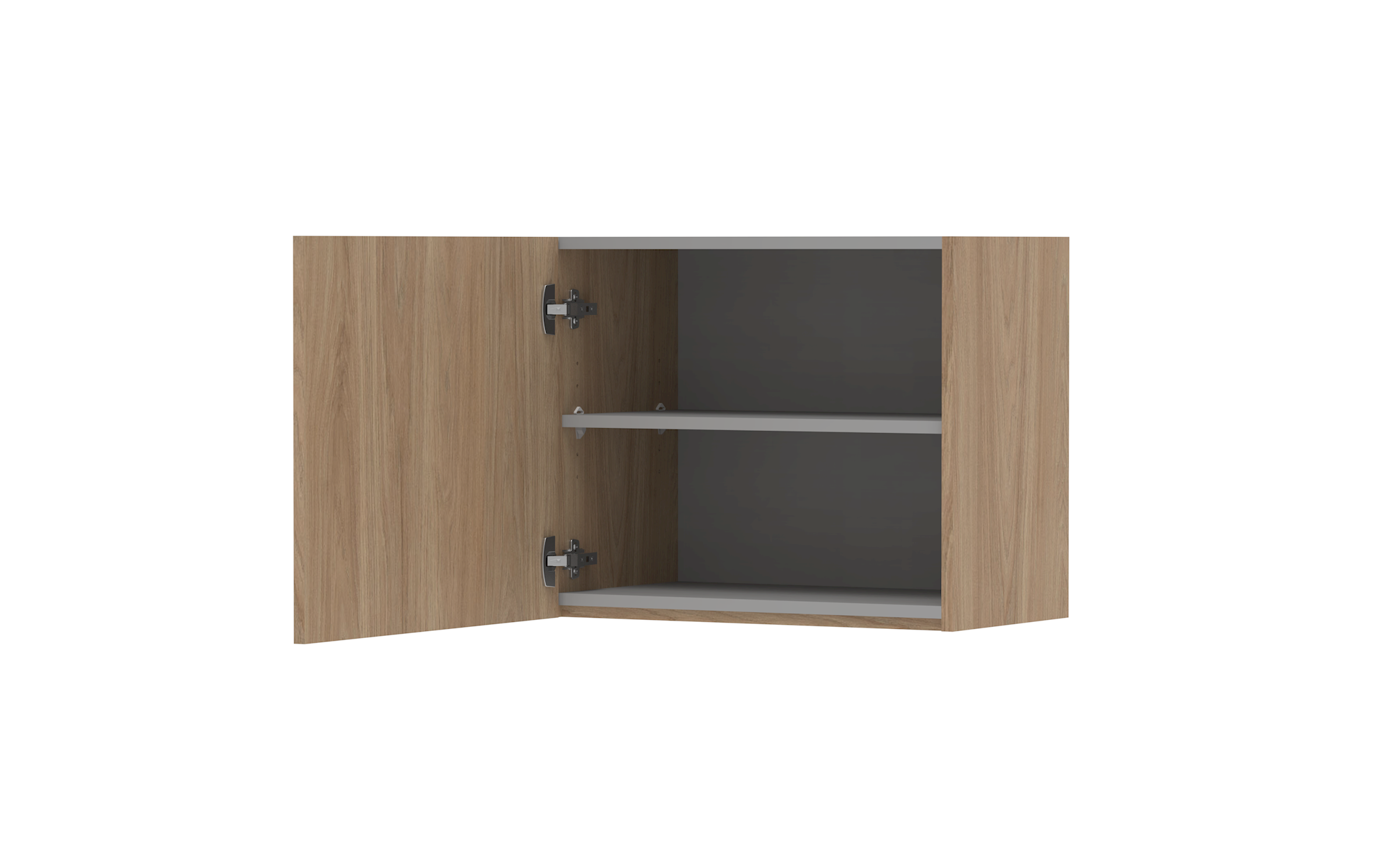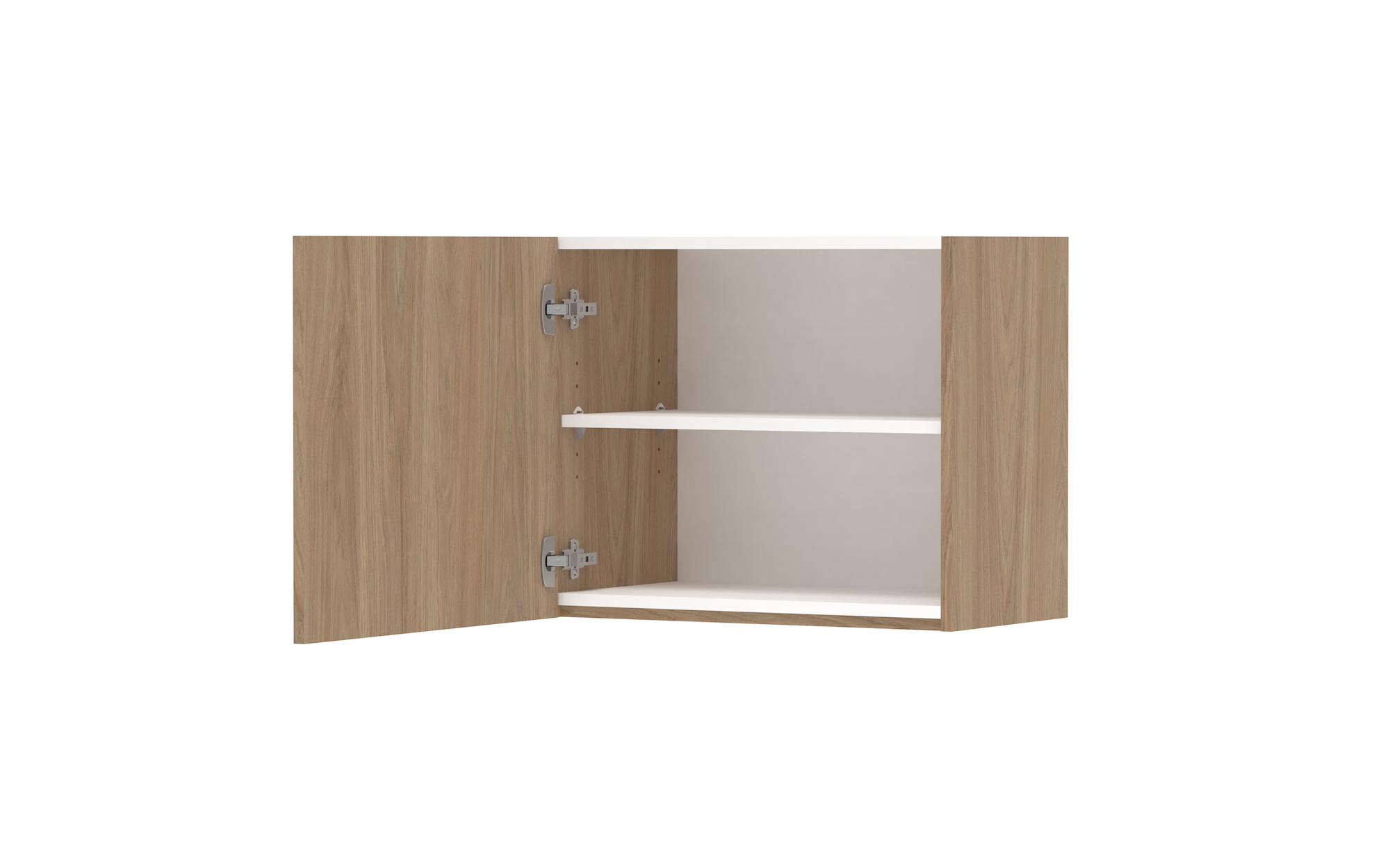 Please note: If open shelf is placed below a wall cabinet, wall cabinet above will be push-to-open (not finger pull).