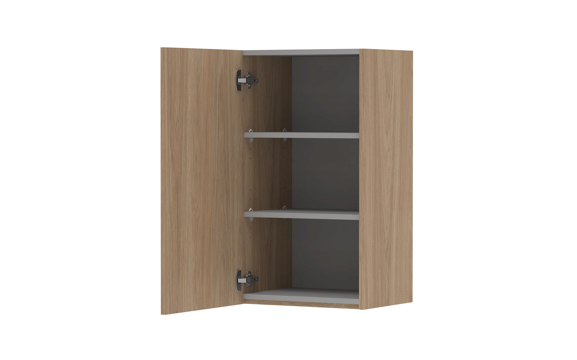 Please note: If open shelf is placed below a wall cabinet, wall cabinet above will be push-to-open (not finger pull).