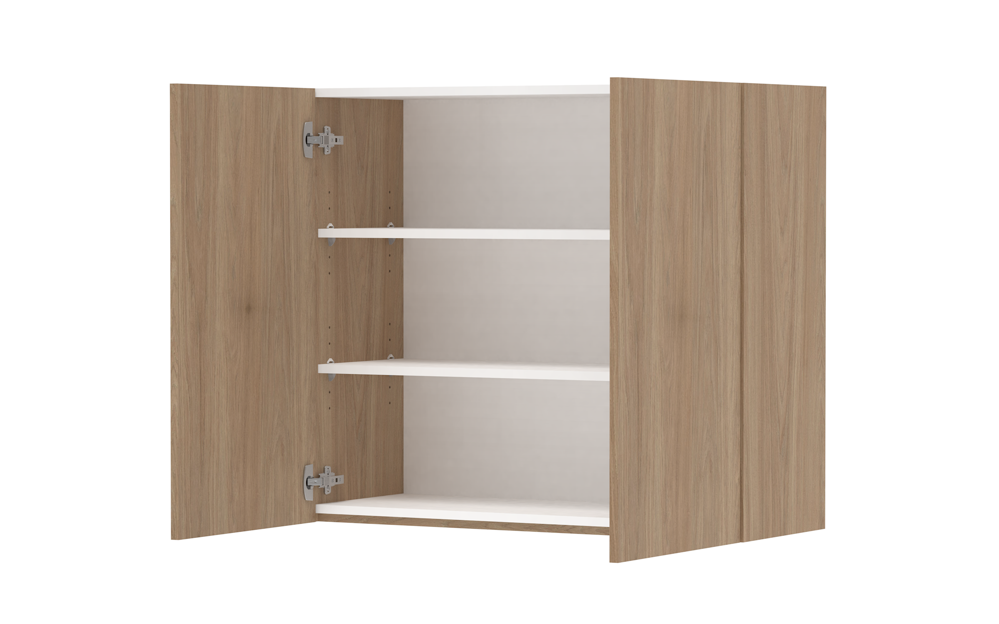 Please note: If open shelf is placed below a wall cabinet, wall cabinet above will be push-to-open (not finger pull).