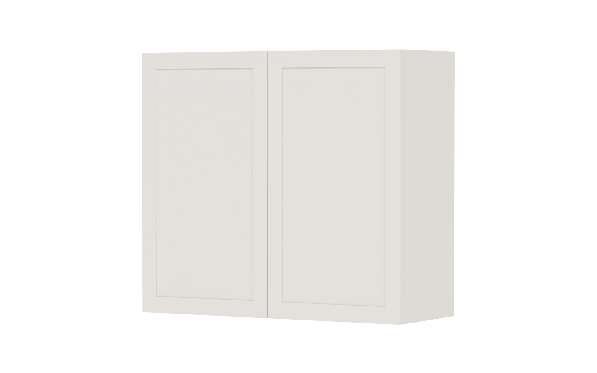 Open shelf cabinets come with matching exposed interior. Excludes all polyurethane finishes.